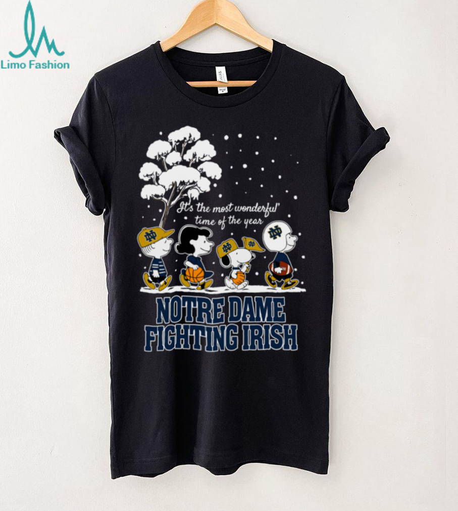 Imagine the snow falling softly on the Golden Dome, the campus aglow with holiday lights, and the Fighting Irish spirit filling the air! This Peanuts t-shirt perfectly captures that magical feeling, blending your love for Notre Dame with the classic charm of Snoopy and the gang celebrating winter’s most wonderful time.