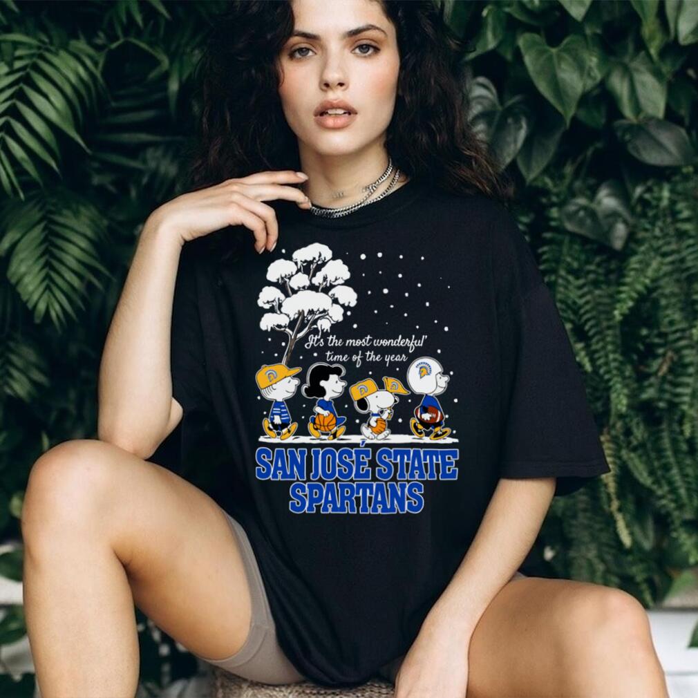 This t-shirt is tailor-made for the truly dedicated San José State Spartans fan who also adores Snoopy and the Peanuts gang. Wear it to CEFCU Stadium, your favorite holiday gathering, or even just while decorating your Christmas tree to showcase your festive team spirit. Looking for a gift for the Spartans-loving Peanuts fanatic in your life? This t-shirt is guaranteed to be a hit! It’s ideal for birthdays, holidays, or just as a fun way to spread some Spartans cheer.