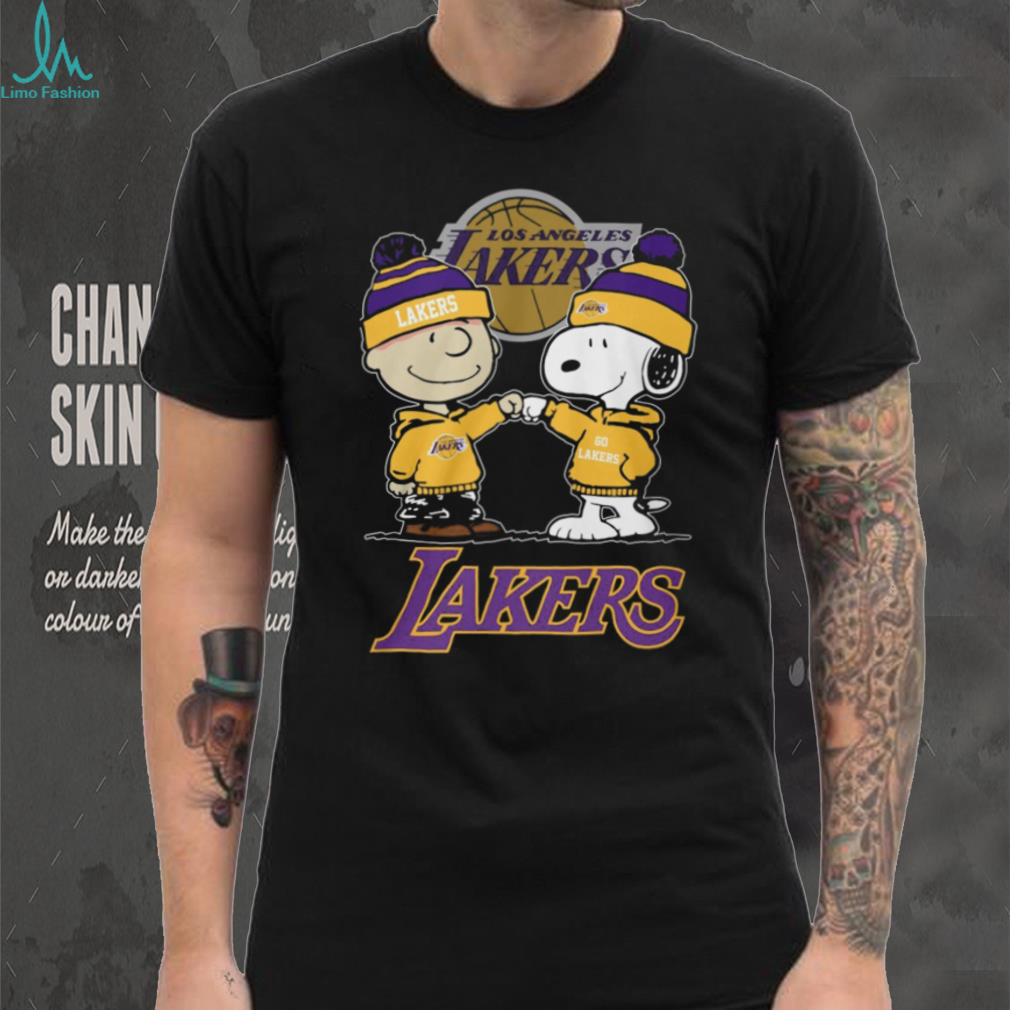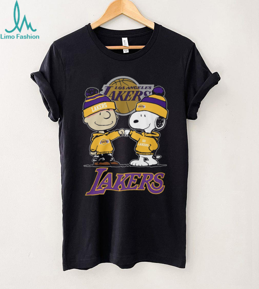 (Peanuts Snoopy and Charlie Brown Lakers Fist Bump Sports T Shirt)Peanuts Snoopy and Charlie Brown Lakers Fist Bump Sports T Shirt, Treat yourself or make a great gift for your loved ones