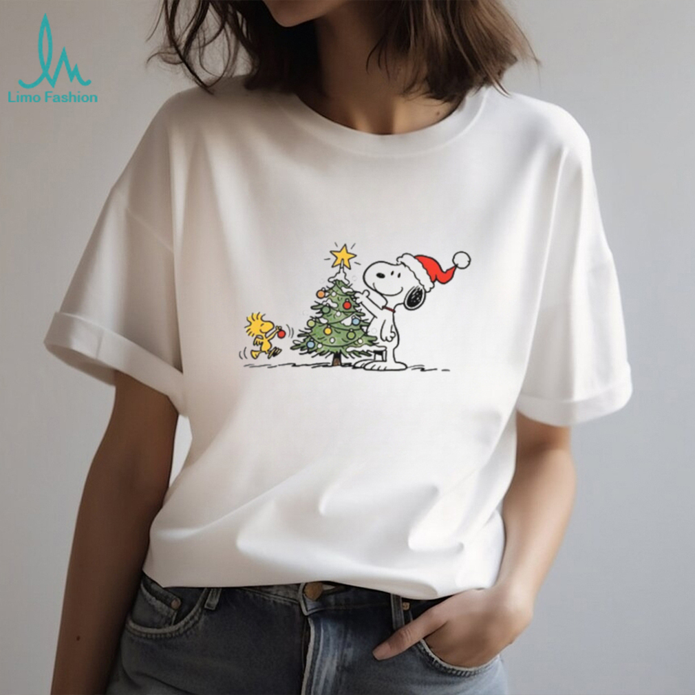 👕About Peanuts Snoopy and Woodstock Holiday Christmas Tree T Shirt