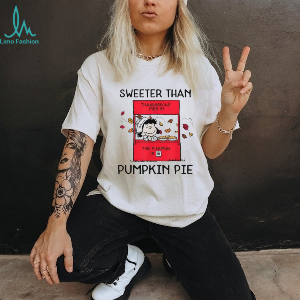 Looking for a tee that embodies the sweet spirit of Thanksgiving? This Peanuts Sweeter Than Pumpkin Pie Graphic T Shirt is the perfect choice! Celebrate the season with Charlie Brown and the gang, showcasing your love for Peanuts and all things Thanksgiving. Get ready for smiles and compliments as you sport this adorable tee at your holiday gathering.