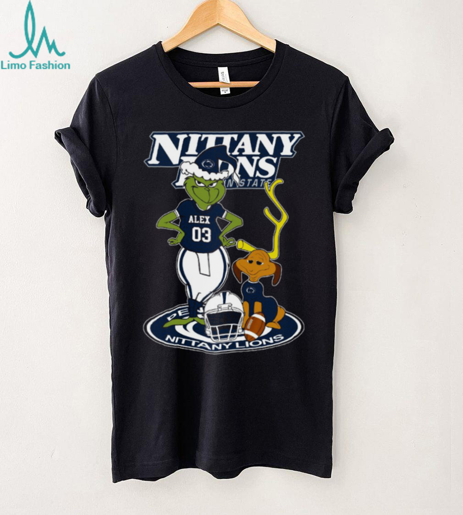 Penn State Nittany Lions NCAA Football Grinch and Dog Shirt – Custom Name Fan Tee – Personalized Game Day & Holiday Gift