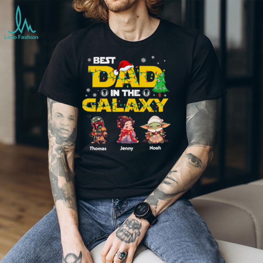 Personalized Best Dad in The Galaxy Shirt, Custom Star Wars Inspired Christmas T Shirt with Kids’ Names, Gift for Dad Mom Papa Family