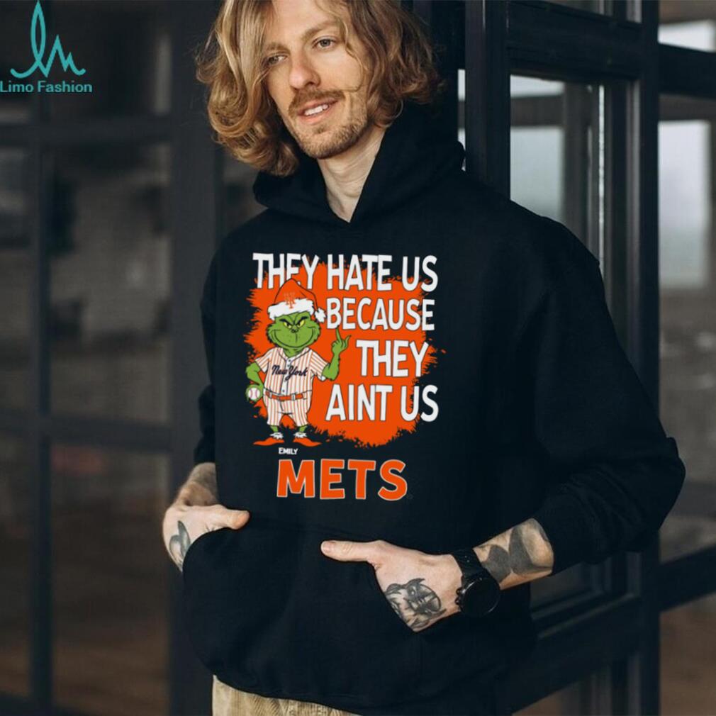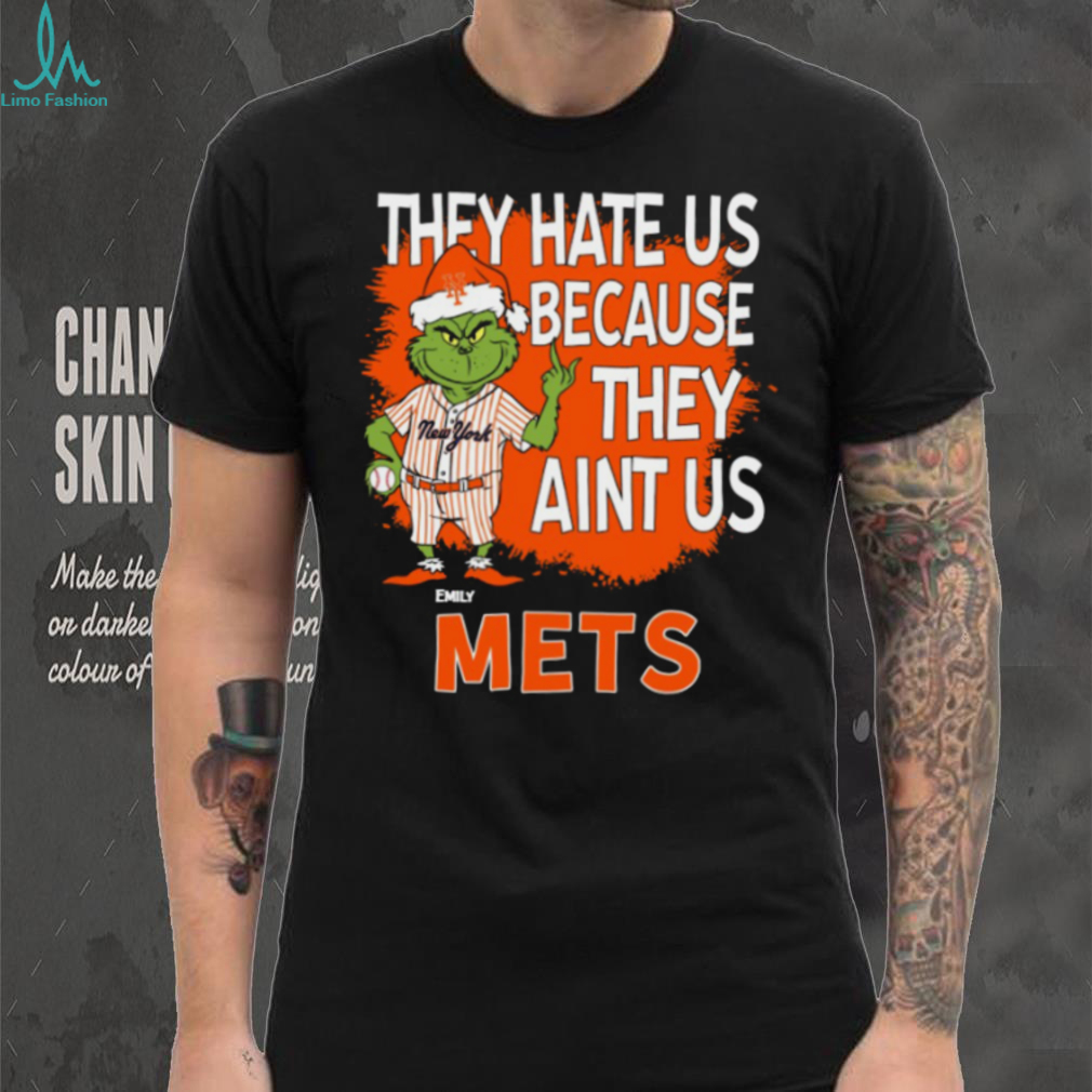 Personalized New York Mets Christmas Shirt, Grinch Santa Baseball Tee with Quote They Hate Us Ain’t Us, MLB Gift Idea