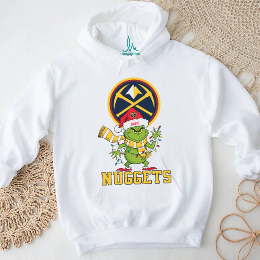 Personalized Nuggets Christmas Shirt, Grinch Holiday Tee with Santa Hat Lights Scarf, Funny NBA Basketball Fan Gift Idea