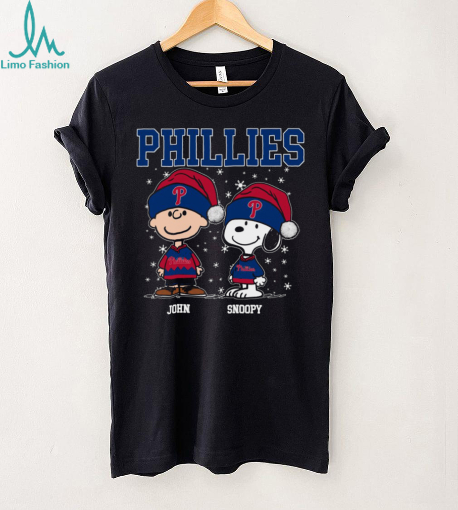 Personalized Philadelphia Phillies Christmas Shirt, Snoopy Charlie Brown Holiday Baseball Tee with Santa Hat, Funny MLB Gift