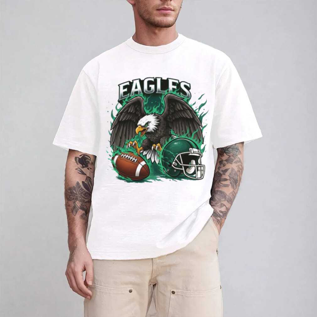 (Philadelphia Eagles Graphic Shirt Angry Eagle & Helmet Green Flame)Philadelphia Eagles Graphic Shirt Angry Eagle & Helmet Green Flame, Treat yourself or make a great gift for your loved ones