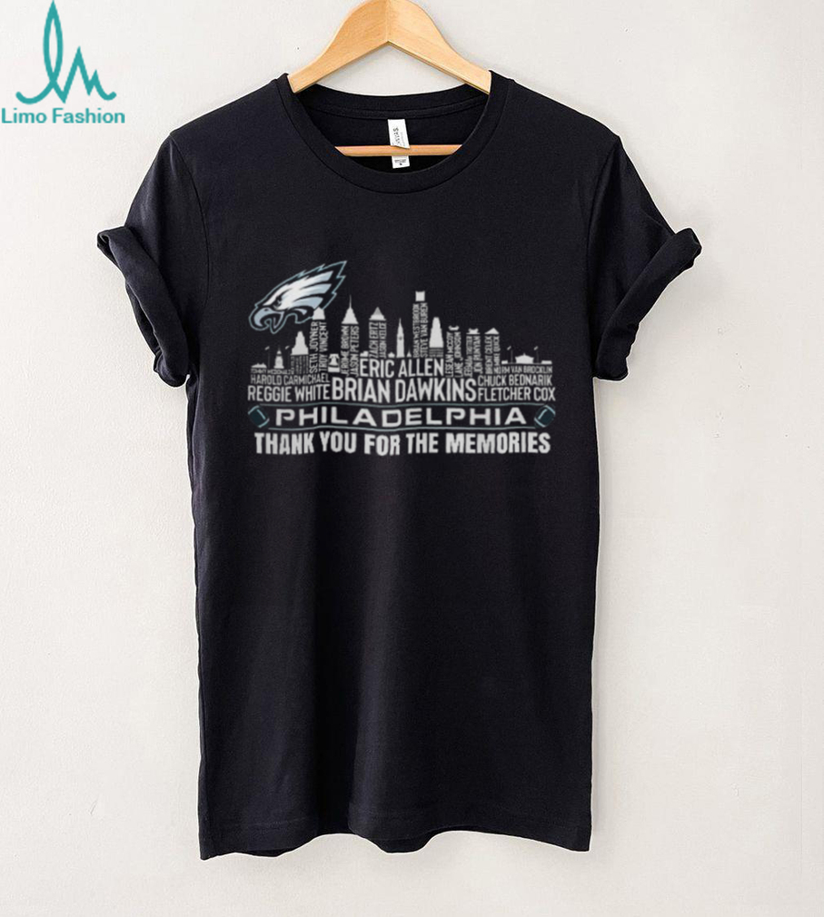 Pay tribute to the Philadelphia Eagles with this “Thank You For The Memories” skyline T-shirt! This design captures the spirit of the city and the unforgettable moments shared with the team. It’s the perfect way to honor the players and the memories they’ve created for Eagles fans everywhere.