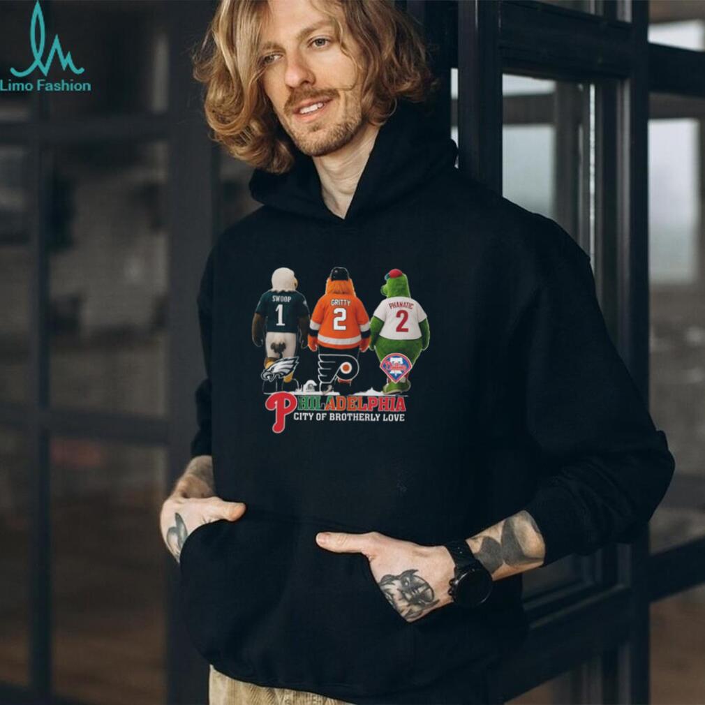 This t-shirt is all about repping Philadelphia’s unforgettable mascots. It’s a fun, unique way to display your city pride and love for your teams. Whether you’re tailgating, watching the game from home, or just strolling around town, this shirt lets everyone know you’re a true Philly fanatic. Crafted from a soft, comfortable fabric, it’s perfect for game day or everyday wear. This shirt is available in multiple sizes for the perfect fit.
