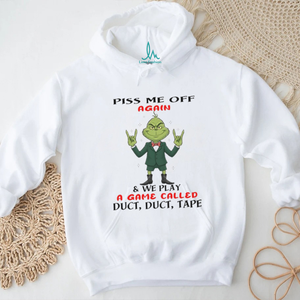 Ready to lay down the rules? This “Piss Me Off Again & We Play A Game Called Duct Duct Tape” T-shirt sends a clear message without saying a word. Perfect for those with a zero-tolerance policy and a sharp sense of humor. Wear this tee and let everyone know you’re not one to be messed with—playfully, of course!