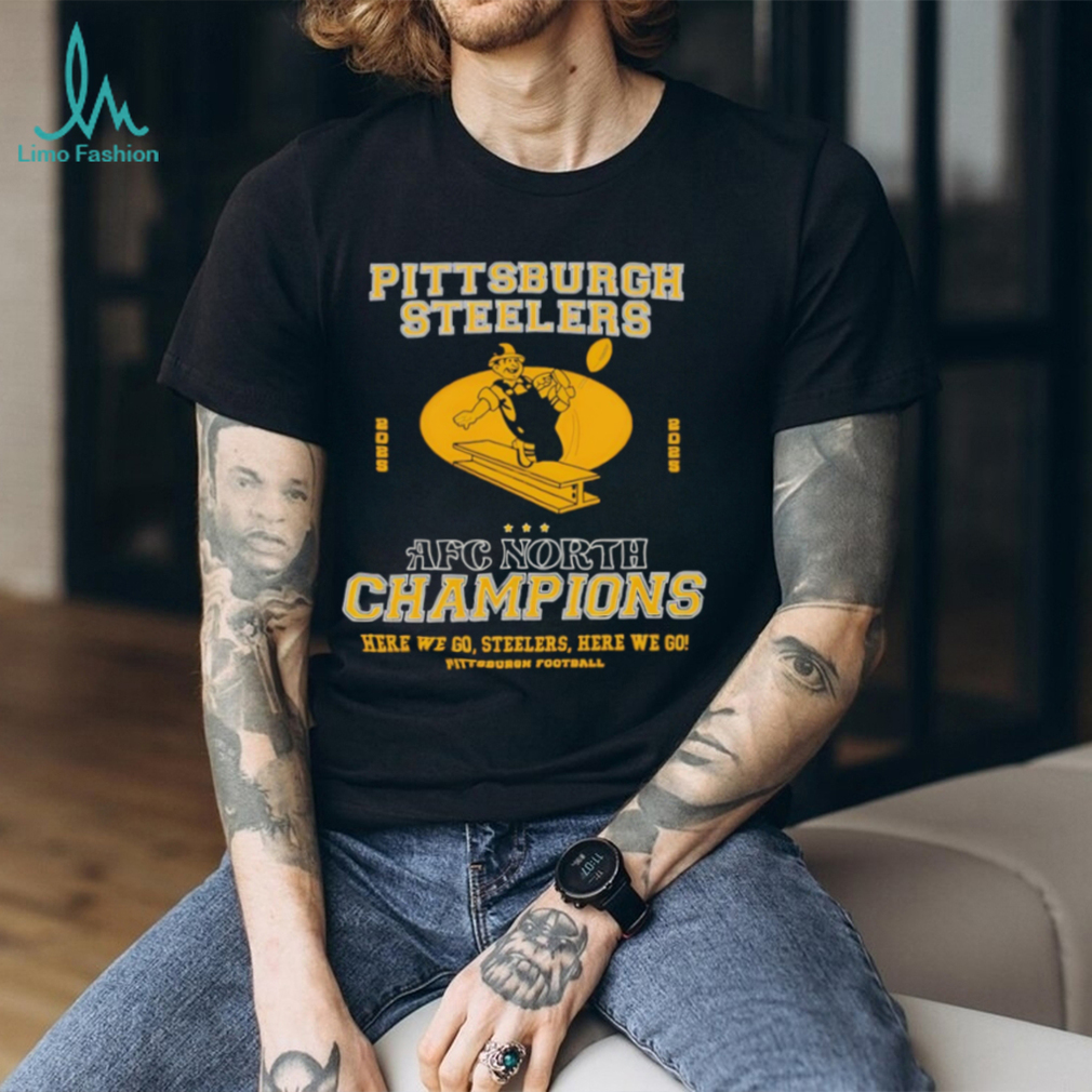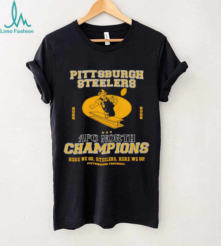 👕About Pittsburgh Steelers AFC North 2025 Champions here we go Steelers here we go shirt