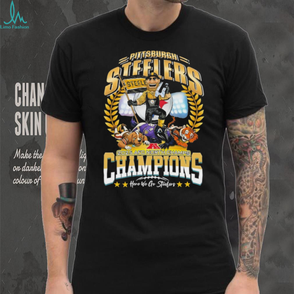 👕About Pittsburgh Steelers AFC North Champs 2025 Champions here we go Steelers shirt