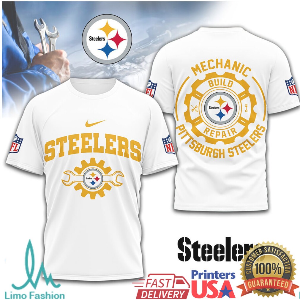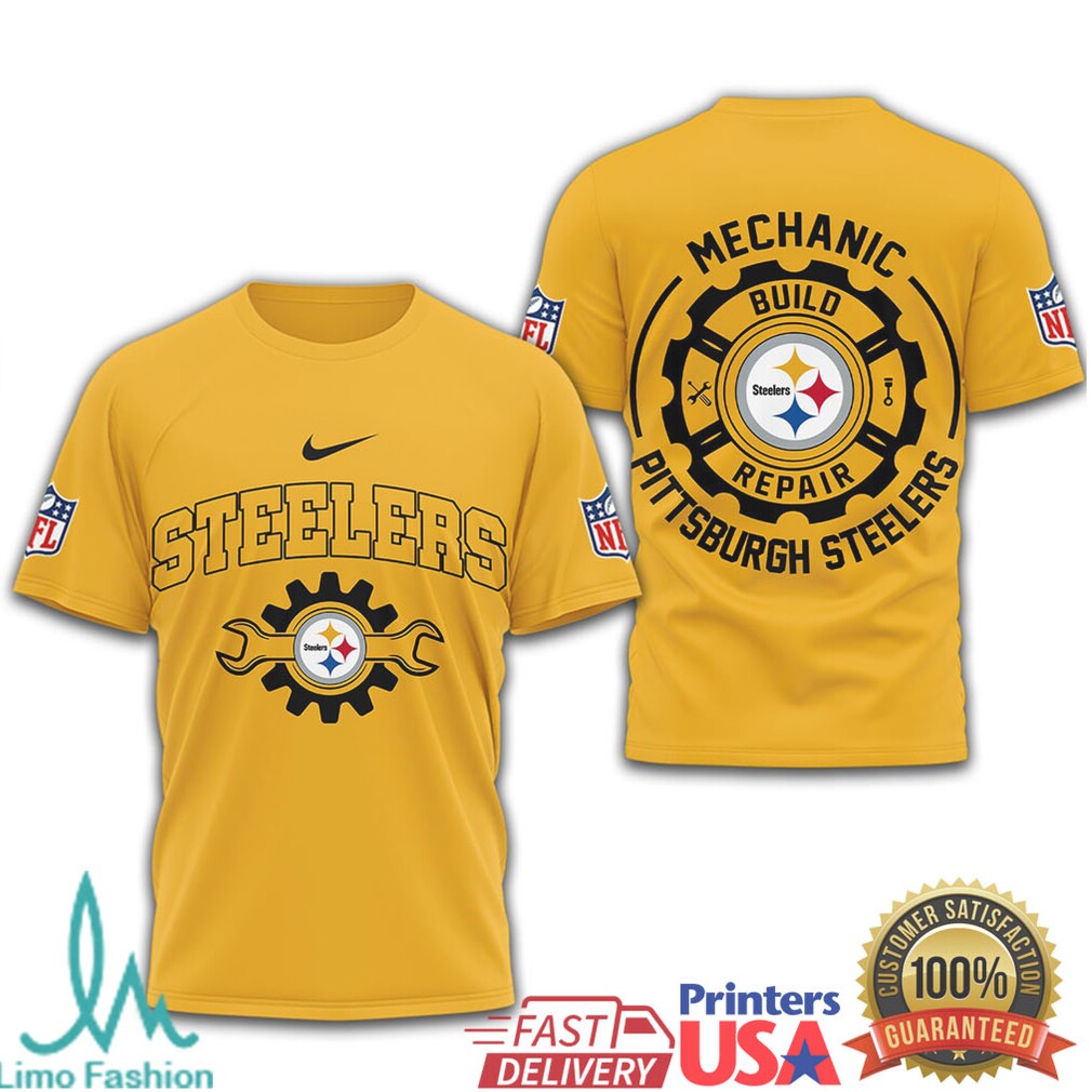 This unique Pittsburgh Steelers Official NFL Mechanic 3D Shirt offers a fresh twist on traditional fan wear. It’s a comfortable tee that features a fun, mechanic-themed 3D graphic integrated with the iconic Steelers branding. Made from a soft, breathable cotton blend, it’s perfect for game days, casual outings, or just lounging around. The design is engineered to catch the eye, making it a great conversation starter. Available in a range of sizes, it ensures a great fit for every fan.
