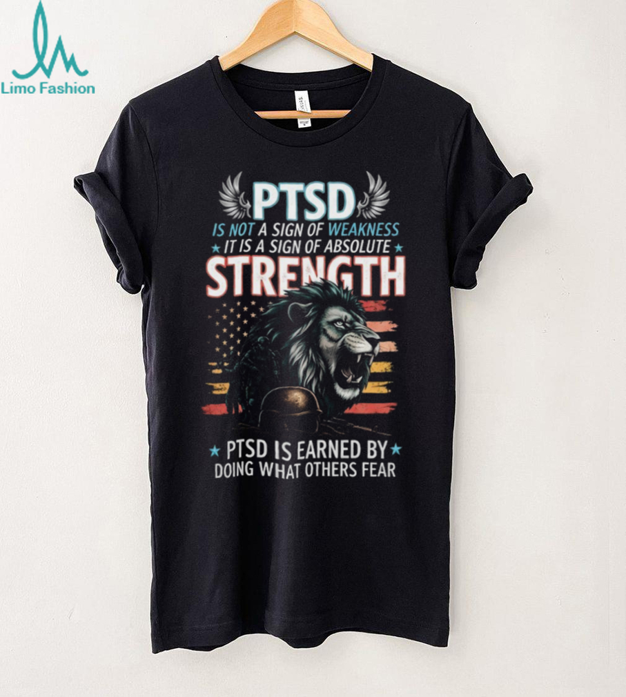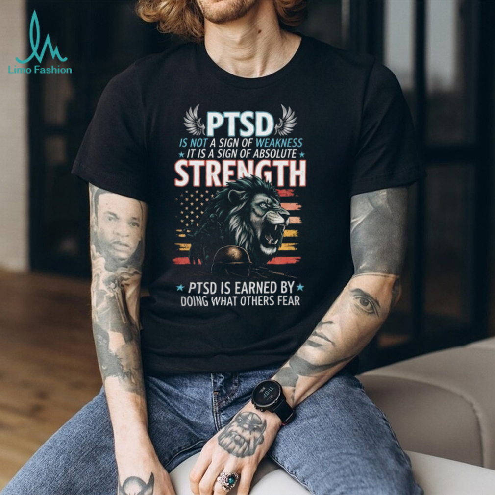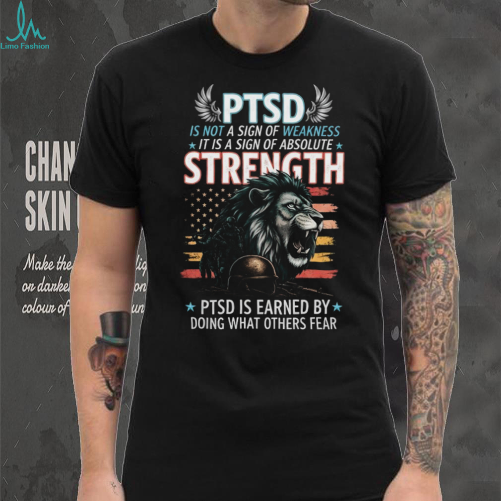 (PTSD Strength Lion Military Veteran Support American Flag T Shirt)PTSD Strength Lion Military Veteran Support American Flag T Shirt, Treat yourself or make a great gift for your loved ones
