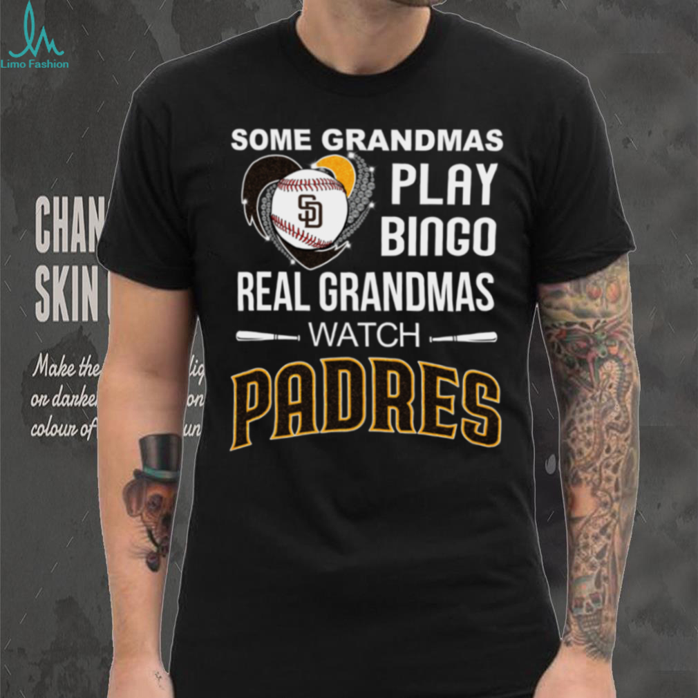Picture the joy on Grandma’s face when she unwraps this special San Diego Padres baseball shirt! With its lovely diamond heart design, it’s the ideal way to express your affection for Grandma and her favorite team. More than just a shirt, it’s a warm embrace from her cherished grandchild.