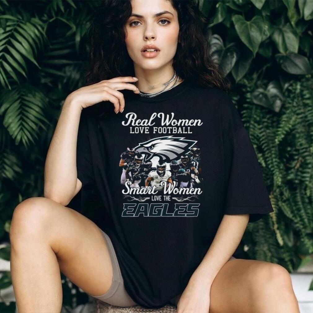 Who Rocks This Best with Real Women Love Football, Smart Women Love the Eagles T Shirt