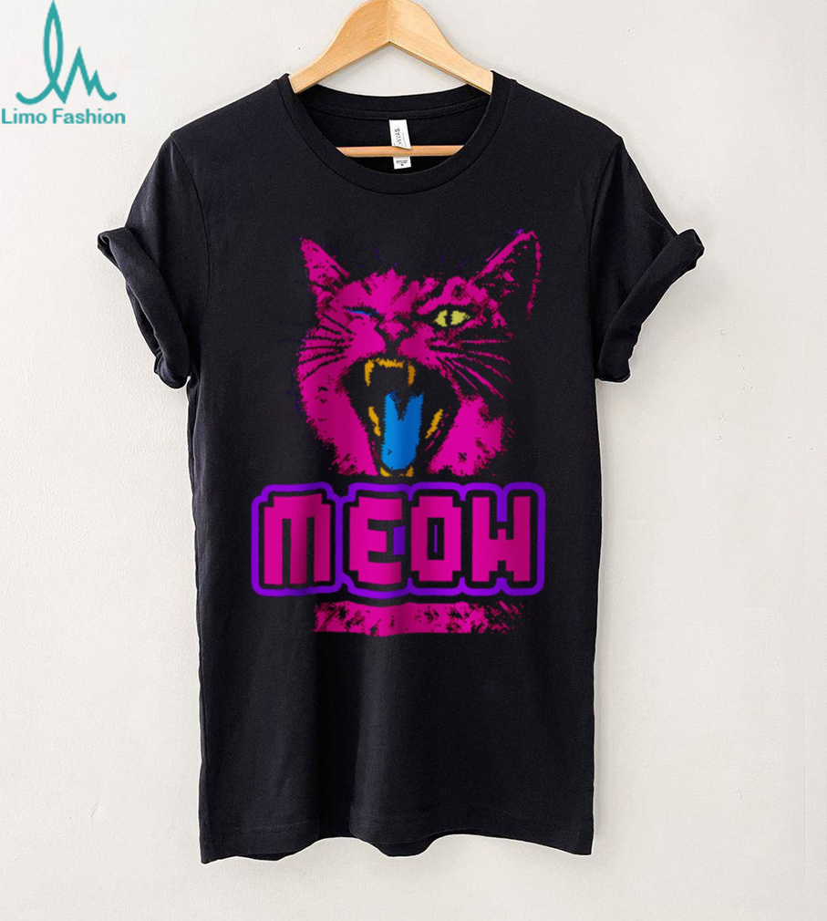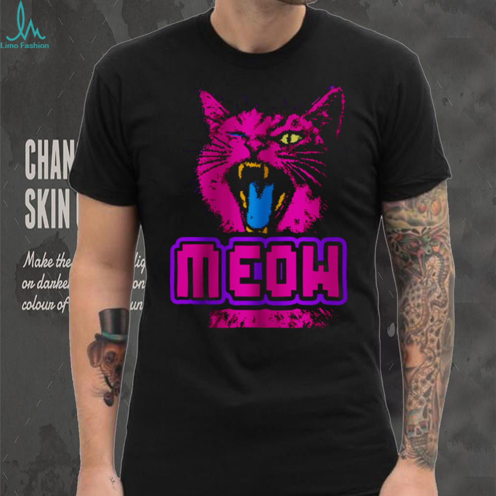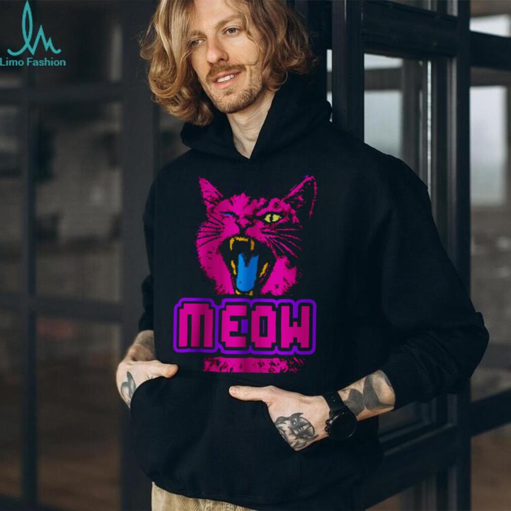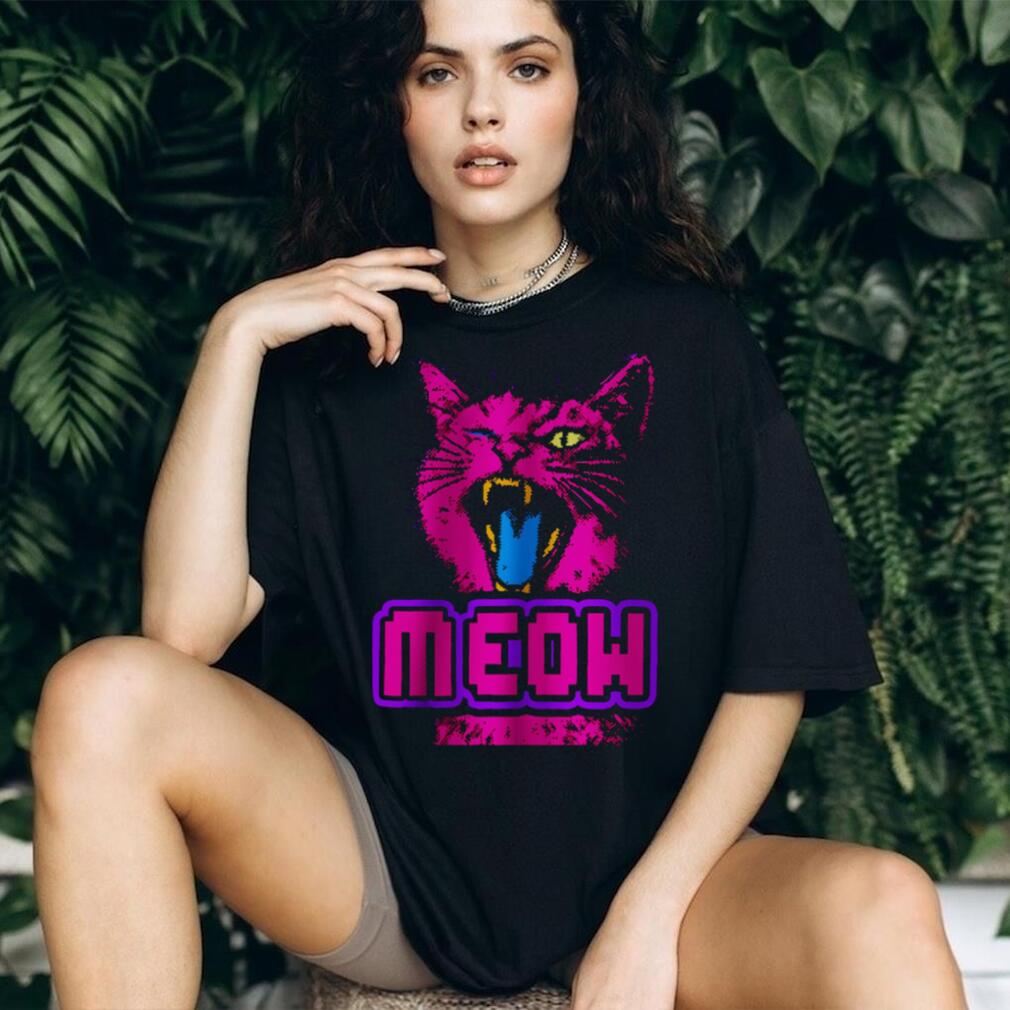 (Retro 90s Neon Pink Angry Cat “MEOW” Cyberpunk Aesthetic Oversized T Shirt)Retro 90s Neon Pink Angry Cat “MEOW” Cyberpunk Aesthetic Oversized T Shirt, Treat yourself or make a great gift for your loved ones