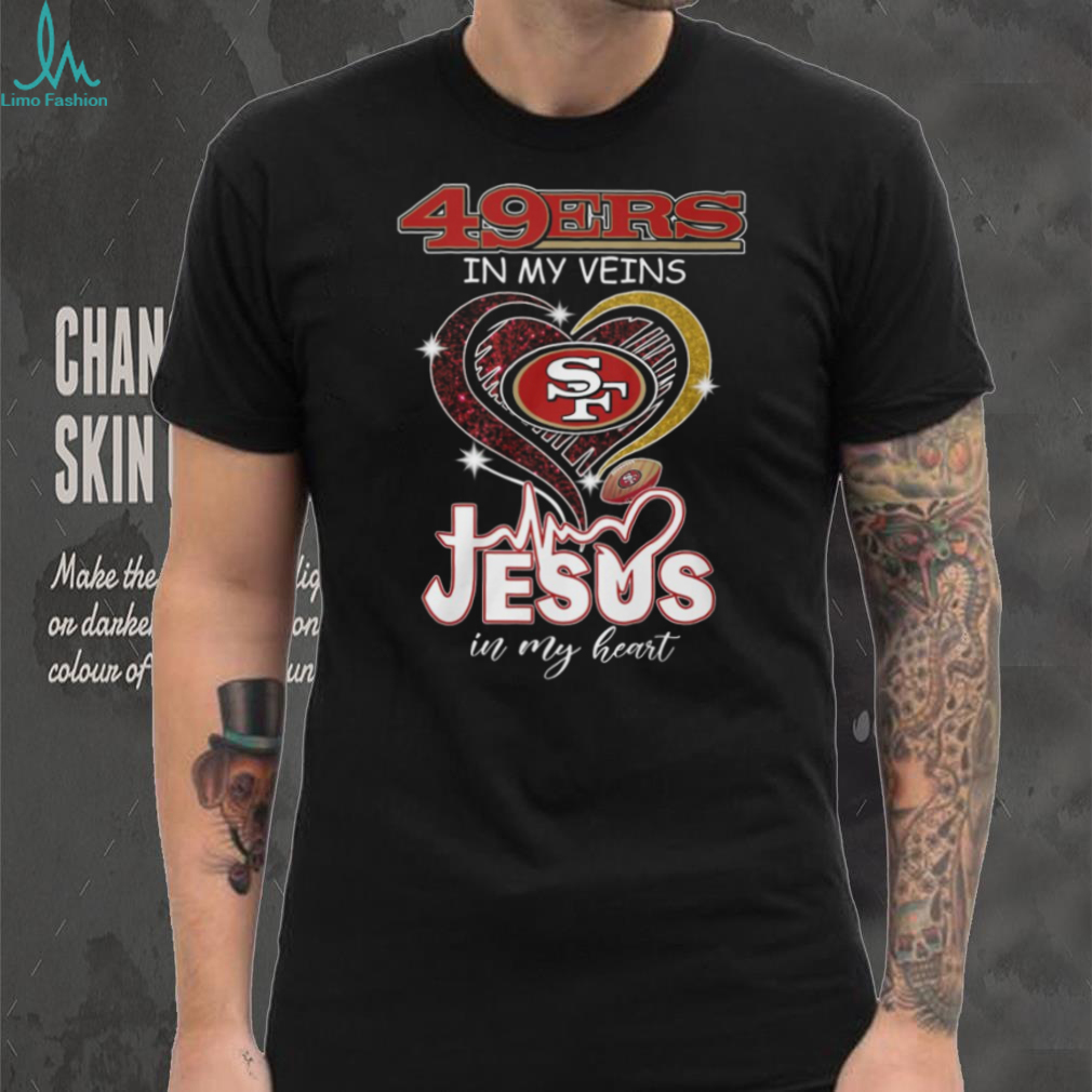 (San Francisco 49ers Jesus In My Heart Football Fan T Shirt)San Francisco 49ers Jesus In My Heart Football Fan T Shirt, Treat yourself or make a great gift for your loved ones