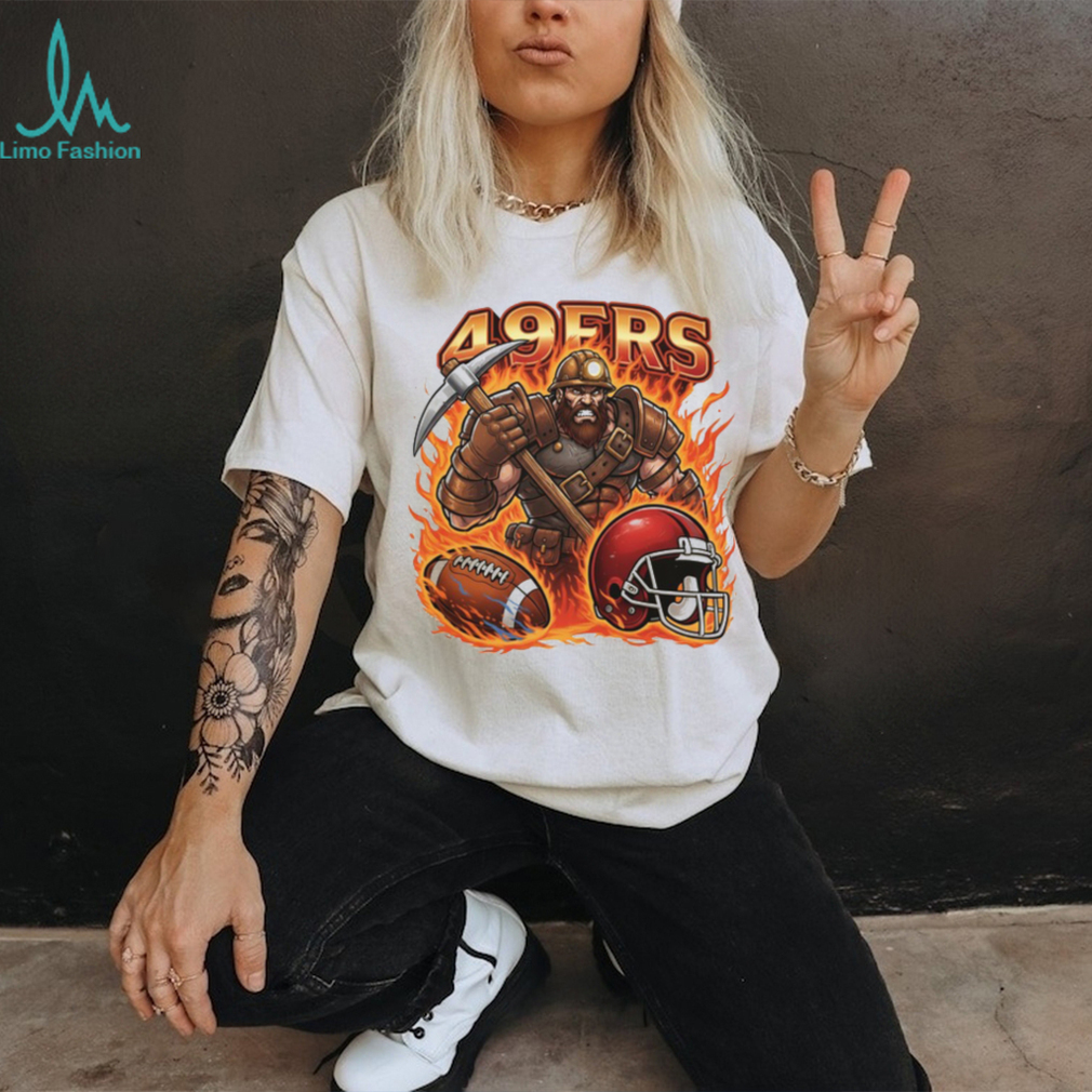 (San Francisco 49ers T Shirt Gold Miner & Helmet Fire Graphic)The biggest danger facing women’s rights in 2025 comes from men pretending to be women and invading their sports and personal spaces. In 2013 Serena Williams discussed the differences between men’s and women’s tennis and remarked that she would lose 6-0, 6-0 to Andy Murray in five to six minutes, possibly ten. This is one of the greatest female athletes of all time admitting that the physical gap is insurmountable at the professional level. How do we unlock equal rights, power, and opportunities for all women and girls by 2025 if we are allowing the destruction of the categories that define their achievements? My answer will be more of a real situation rather than a full of statements or definition. I guess you can’t give a proper statement for it. But i would say society is ascending towards a qualified environment for both San Francisco 49ers T Shirt Gold Miner & Helmet Fire Graphic and genders. People are being aware of the importance and peaks of gender equality almost in all the fields. Girls started being independent before being labeled as married or a housewife. Society is giving equal importance to both the genders. That’s a mark that we are developing.