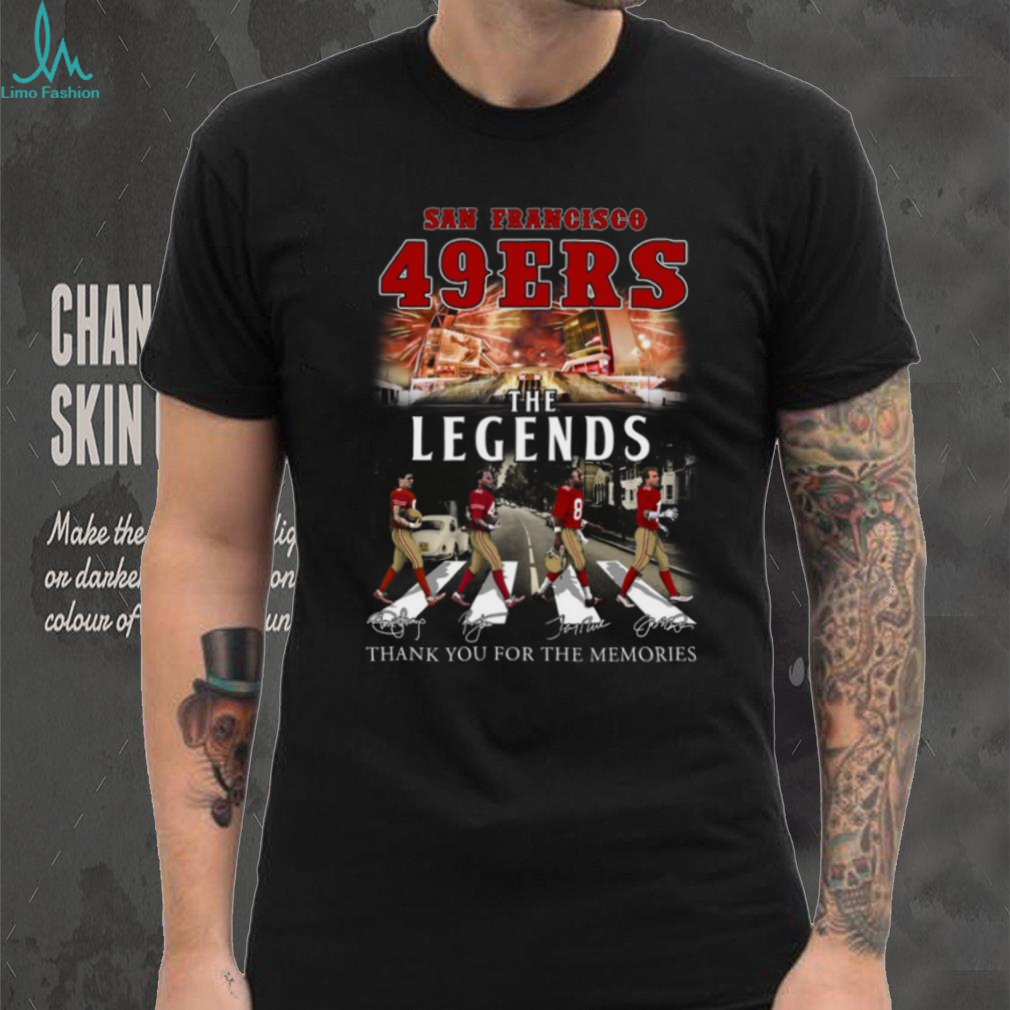 To keep your San Francisco 49ers The Legends Abbey Road Style T Shirt looking fresh and vibrant, wash it inside out in cold water with similar colors. Tumble dry low or air dry. Avoid ironing directly on the creative design to preserve its integrity.