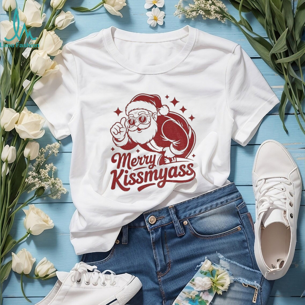 Tired of overly sweet holiday messages? This “Santa Claus wearing glass Merry Kissmyass Christmas shirt” is for anyone who loves their Christmas with a generous dash of cheeky humor and a rebellious spirit. It’s the perfect way to tell those saccharine sentiments exactly where they can go, all while keeping a festive, if slightly mischievous, vibe. If you believe in a little bit of naughty mixed with your nice, this shirt is your new favorite holiday statement. Get ready to spread some unconventional cheer and enjoy the reactions!