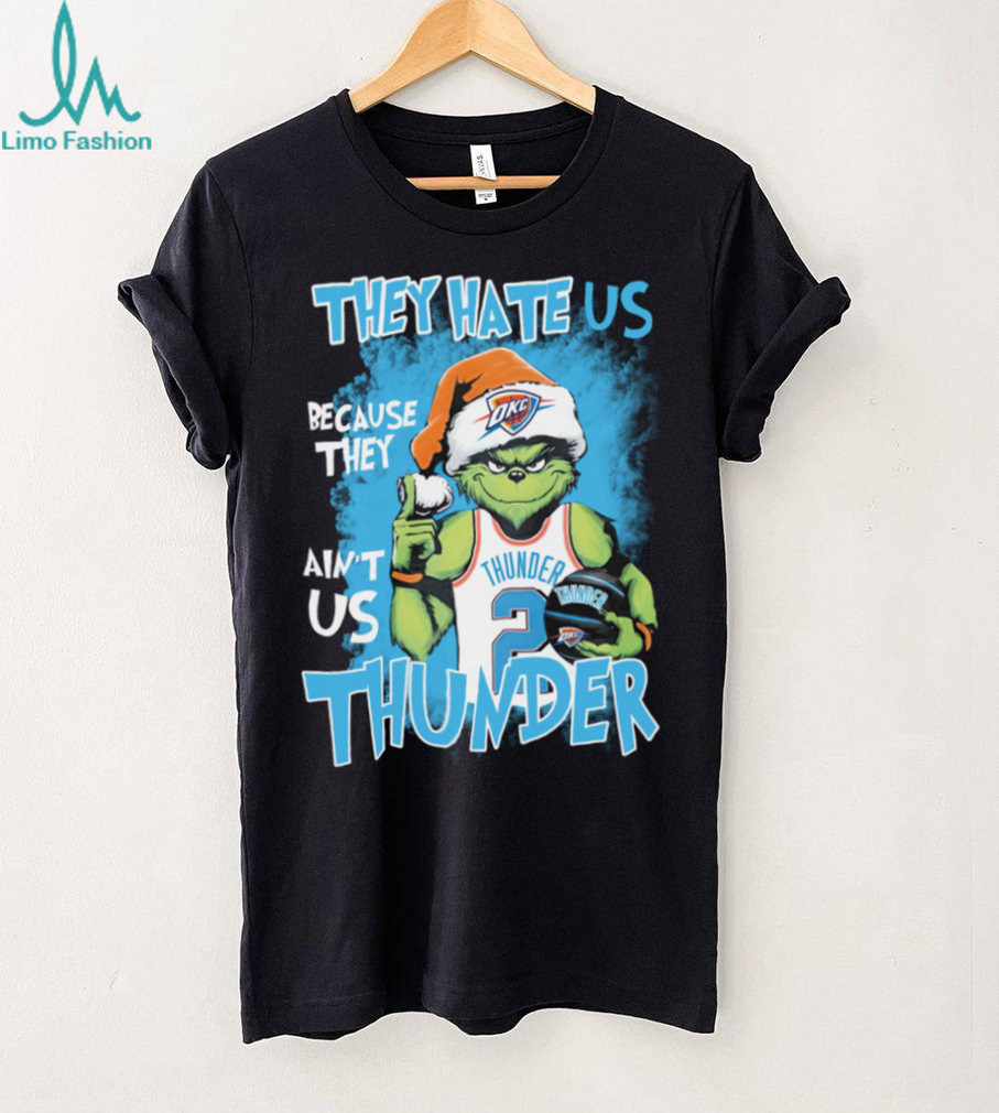 Get ready to sleigh the holiday season with a dash of Grinchy mischief and Oklahoma City Thunder pride! This “Santa Grinch They Hate Us Because They Ain’t Us Oklahoma City Thunder Christmas Shirt” is the ultimate crossover tee for fans who love basketball and spreading unconventional Christmas cheer.