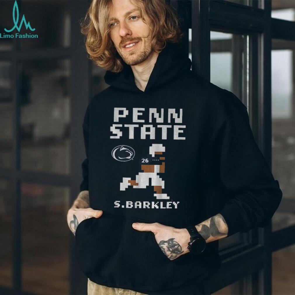 This Saquon Barkley retro shirt solves the problem of finding unique fan apparel. Featuring an 8-bit design that captures the nostalgia of classic video games, it’s a standout piece for any Nittany Lions supporter. Made from a soft and comfortable cotton blend, this shirt is perfect for cheering on your team at Beaver Stadium or relaxing at home. With a range of sizes available, you can find the perfect fit to represent your favorite running back in style.
