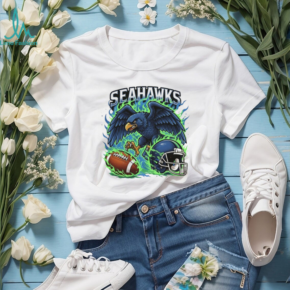(Seattle Seahawks Graphic Tee Fierce Hawk & Helmet Blue Flame Design)The most precious commodity is time. If you were to die in 5 years what would you regret not doing? Every minute you spend doing something that makes you miserable is a minute you could be spending doing something you love. Your identity is not your sport, it is the person you bring to your sport. If you haven’t noticed, men and women are often built different, with different focus on strength and body mass. If a woman wants to compete in sports with men on an equal basis, they should be allowed to do so, but should not be compelled to do so. The whole concept of sports is a competition based on a certain leveling of the playing field. I was never ‘big’ enough to really compete at a top (varsity) level in football, but I certainly was able to compete in track, wrestling and Seattle Seahawks Graphic Tee Fierce Hawk & Helmet Blue Flame Design. Public school sports tries to establish some level of equality of those competing for positions on the teams. Women can achieve top levels in many sports, but not in others. To require ALL sports to not have any constraints is just as bad as requiring artificial constraints.