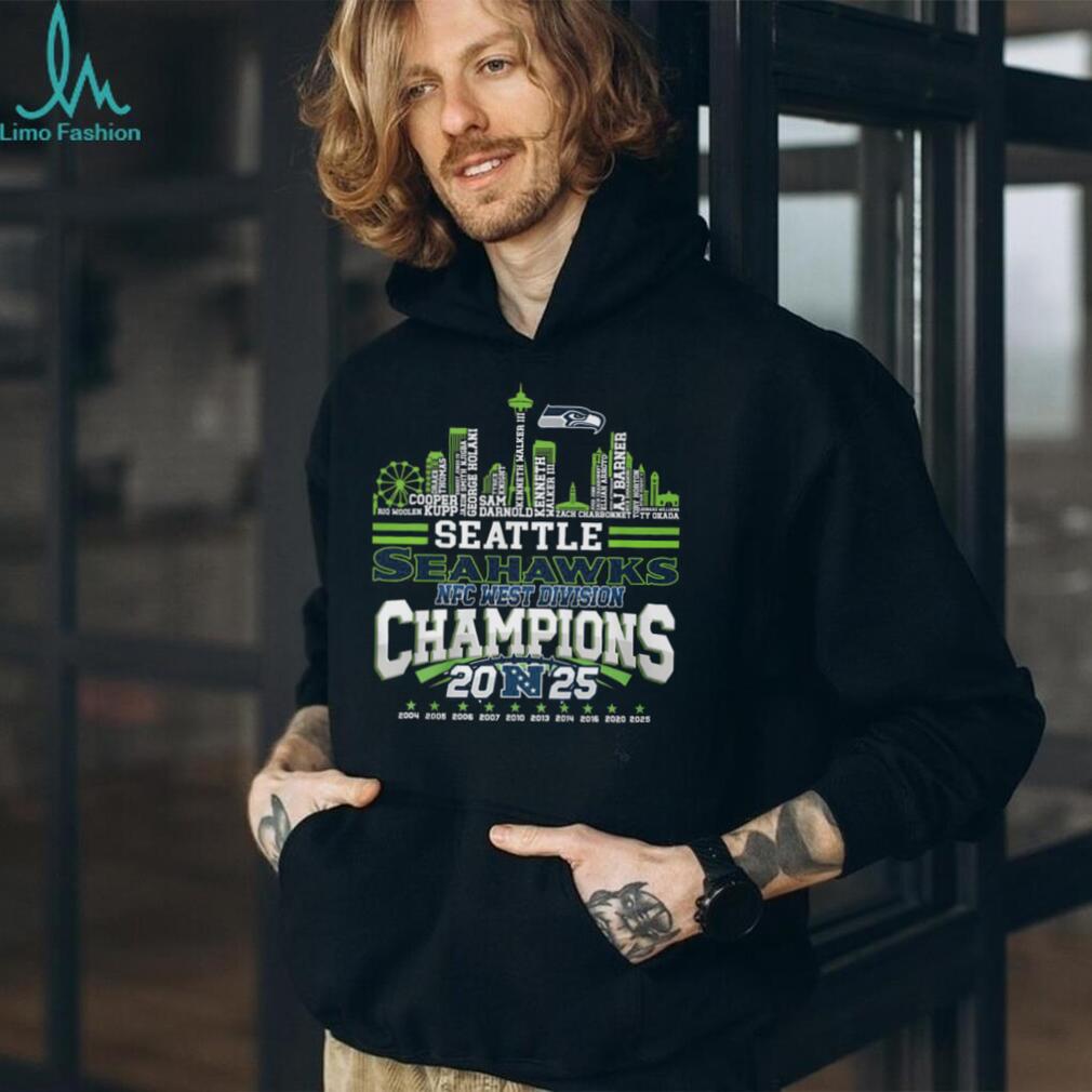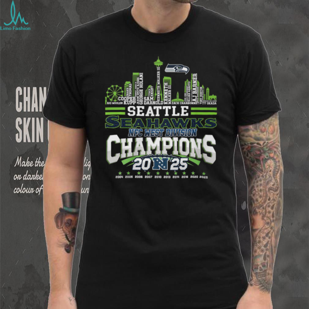 Seattle Seahawks NFC West Division Champions 2025 Skyline Roster Names T Shirt, Treat yourself or make a great gift for your loved ones