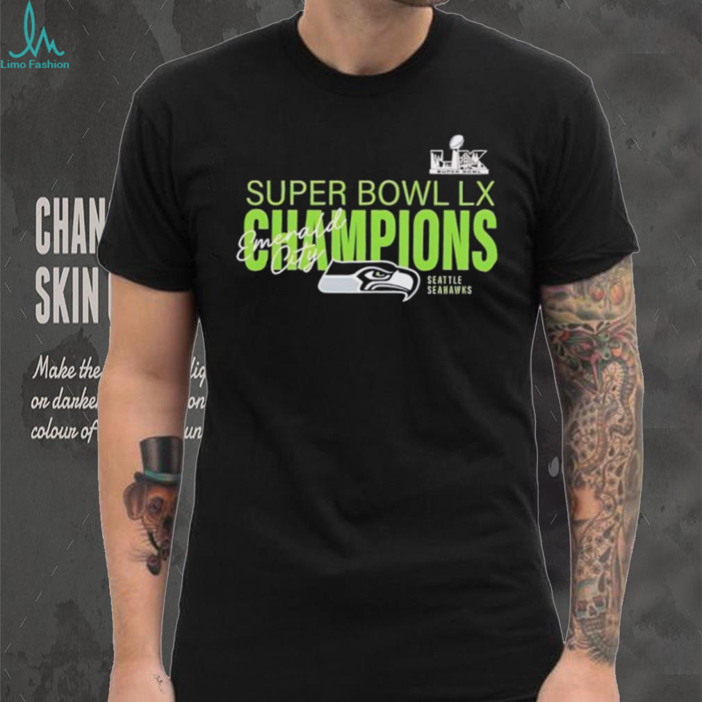 (Seattle Seahawks Super Bowl LX Champions Emerald City Black T Shirt)Seattle Seahawks Super Bowl LX Champions Emerald City Black T Shirt, Treat yourself or make a great gift for your loved ones