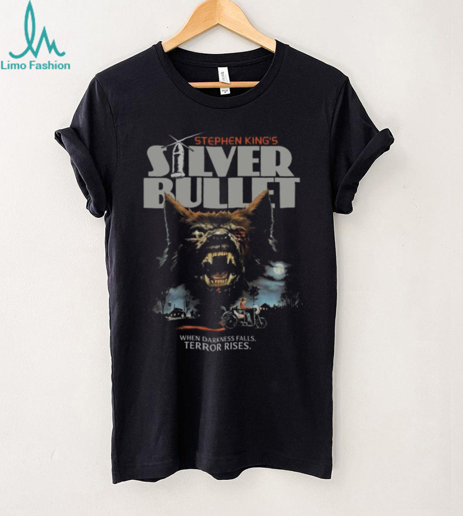 Celebrate 40 years of terror with this Silver Bullet t-shirt! Featuring the iconic imagery from the classic Stephen King movie, this tee is a must-have for horror fans and collectors alike. Embrace the darkness and show your love for this cult classic!