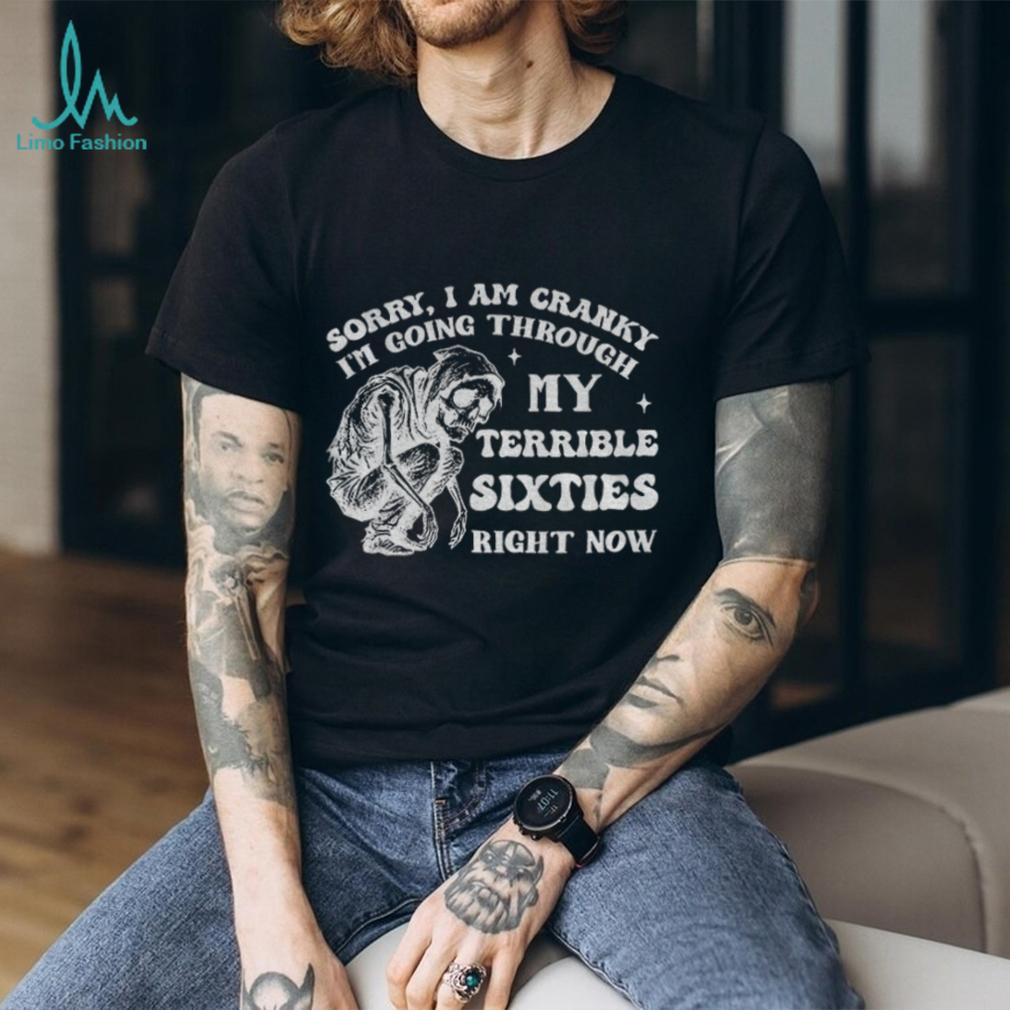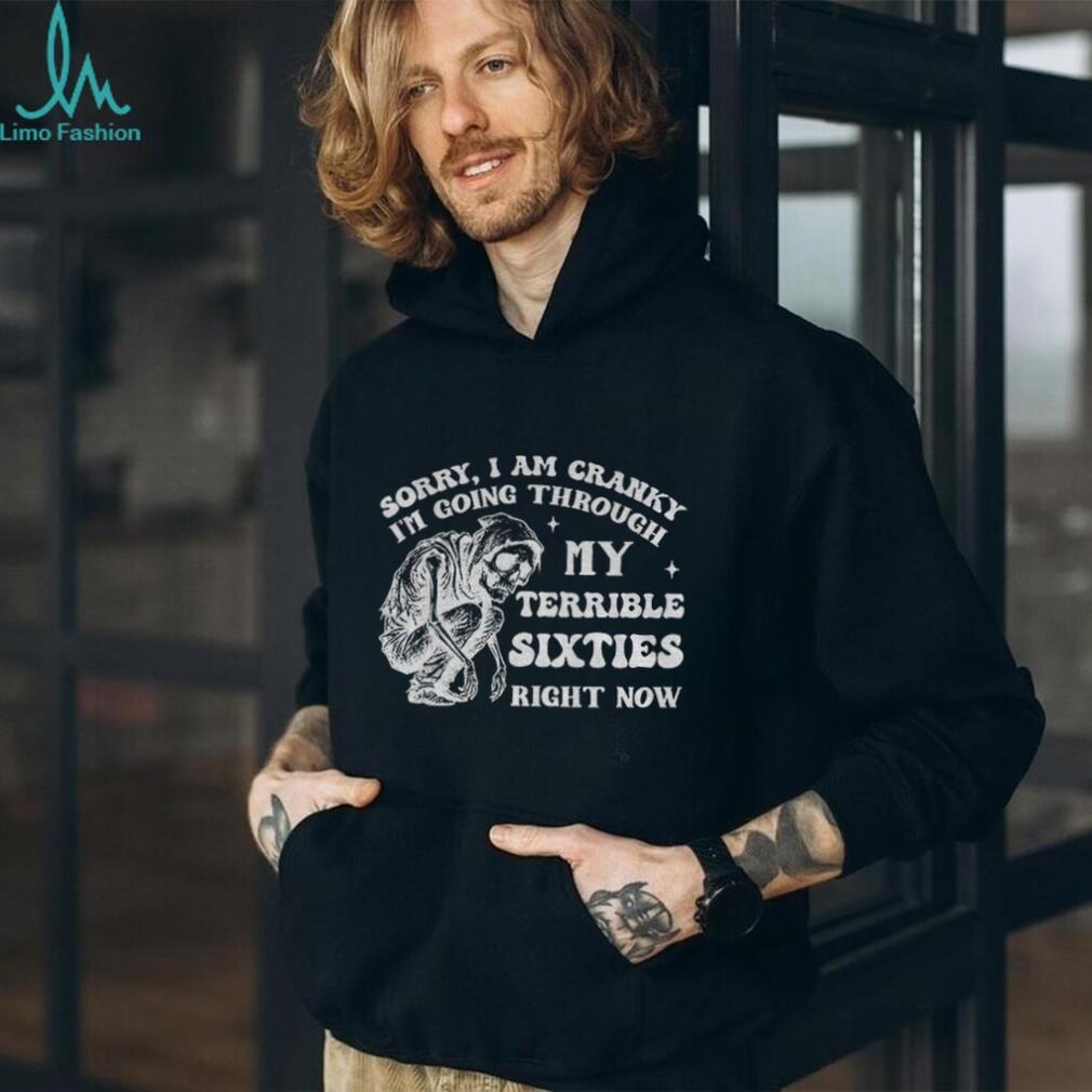 • This item: Skeleton sorry I am cranky I’m going through my terrible sixties right now shirt Original price was: $28.99.Current price is: $21.95.