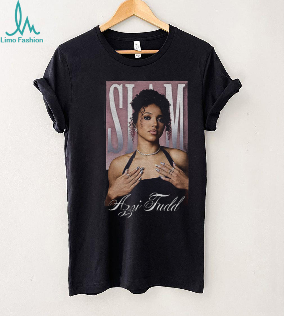 This Slam Azzi Fudd posing UConn Huskies Big East Conference Basketball WNBA shirt is for the devoted UConn Huskies fan, women’s basketball enthusiasts, and anyone who admires Azzi Fudd’s talent and presence. It’s ideal for wearing to basketball games, sports bars, or casual outings where you want to show off your support for collegiate and professional women’s basketball. It also makes an excellent gift for a friend or family member who follows the Big East Conference or the WNBA and appreciates standout fan merchandise.