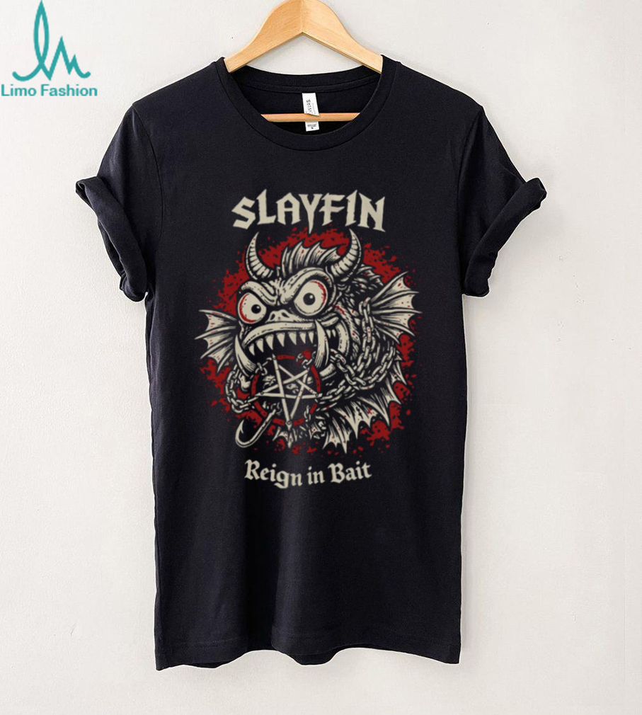 (Slayfin Metal Parody T Shirt “Reign In Bait” Heavy Metal Fishing Graphic)Slayfin Metal Parody T Shirt “Reign In Bait” Heavy Metal Fishing Graphic, Treat yourself or make a great gift for your loved ones