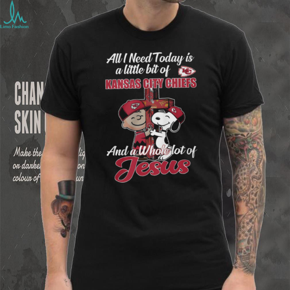 Touchdown for faith and football! This Snoopy and Charlie Brown “All I Need Today Is A Little Bit Of Kansas City Chiefs And A Whole Lot Of Jesus” T-shirt is a unique way to express your passions. It’s the perfect blend of team spirit, faith, and childhood nostalgia. If you love the Chiefs, cherish your faith, and have a soft spot for Snoopy, this shirt is a winning combination!