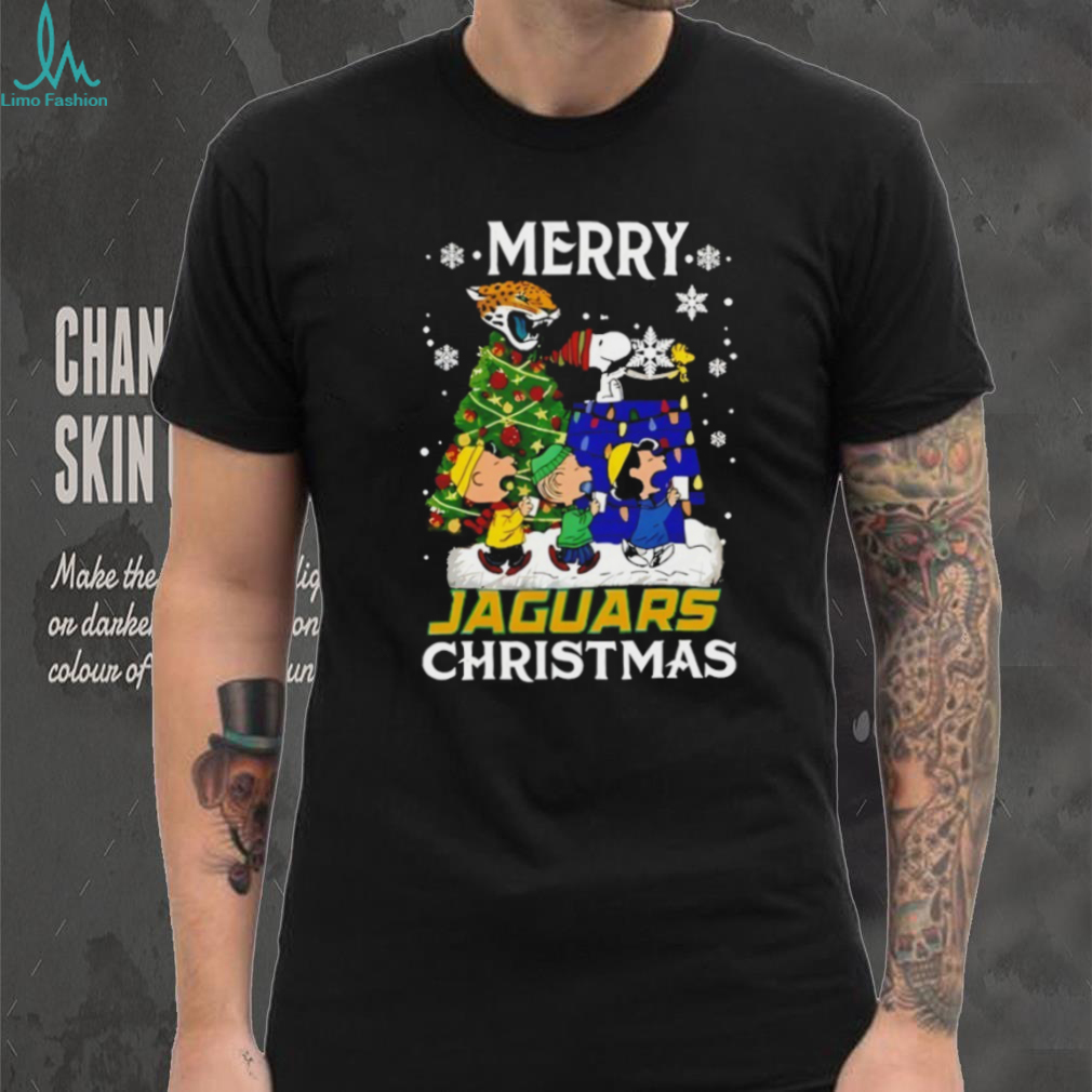 With each Snoopy And Friends Merry Jacksonville Jaguars Christmas NFL shirt, you’re contributing to creating a green tree. To keep your shirt looking its best, machine wash cold, tumble dry low, and avoid ironing directly on the design. With proper care, this shirt will bring joy for many Christmases to come!