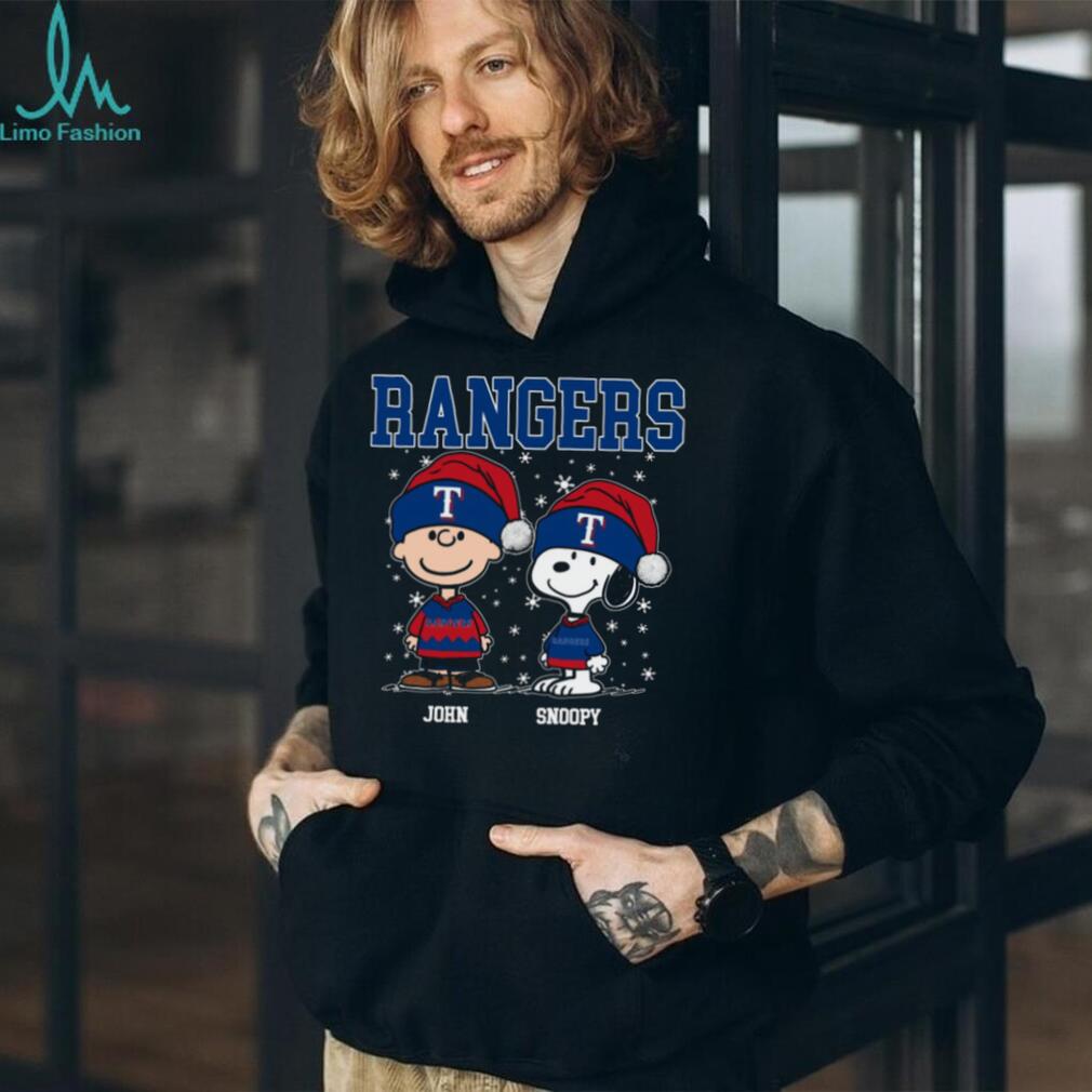 Snoopy Charlie Brown Christmas Baseball Tee, Personalized Texas Rangers Holiday Shirt with Santa Hat, Funny MLB Fan Gift