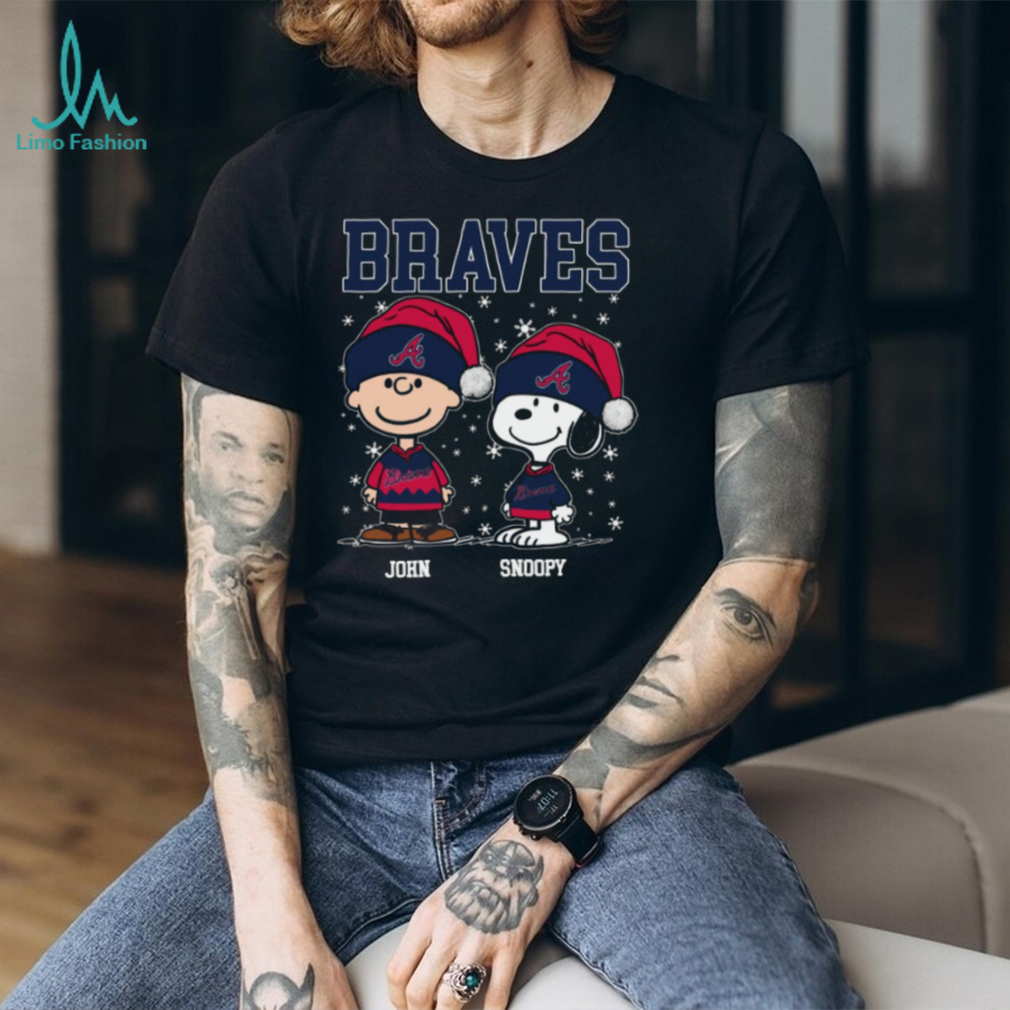 Snoopy Charlie Brown Holiday Baseball Tee, Personalized Atlanta Braves Christmas Shirt with Santa Hat, Funny MLB Fan Gift