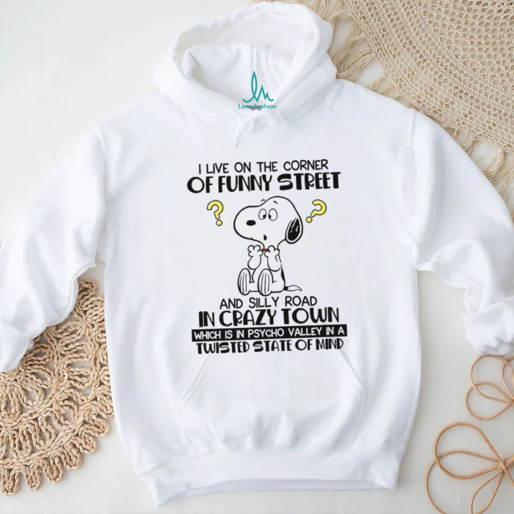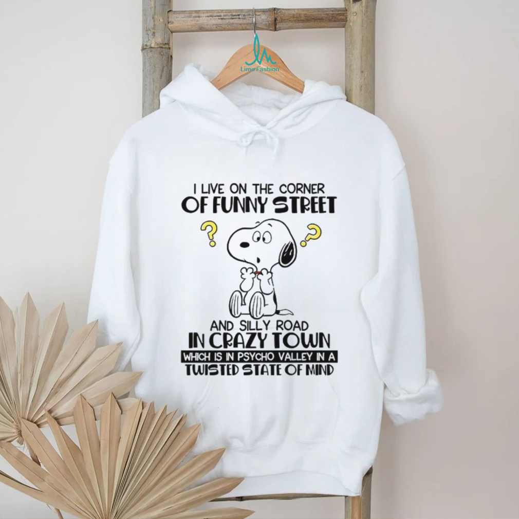Do you reside at the intersection of whimsy and laughter? Then claim your spot with this Snoopy “I Live on the Corner of Funny Street and Silly Road” Trending Shirt! Perfect for those who navigate life with a dash of humor and a whole lot of silliness, this tee is a wearable reminder to embrace your playful side.