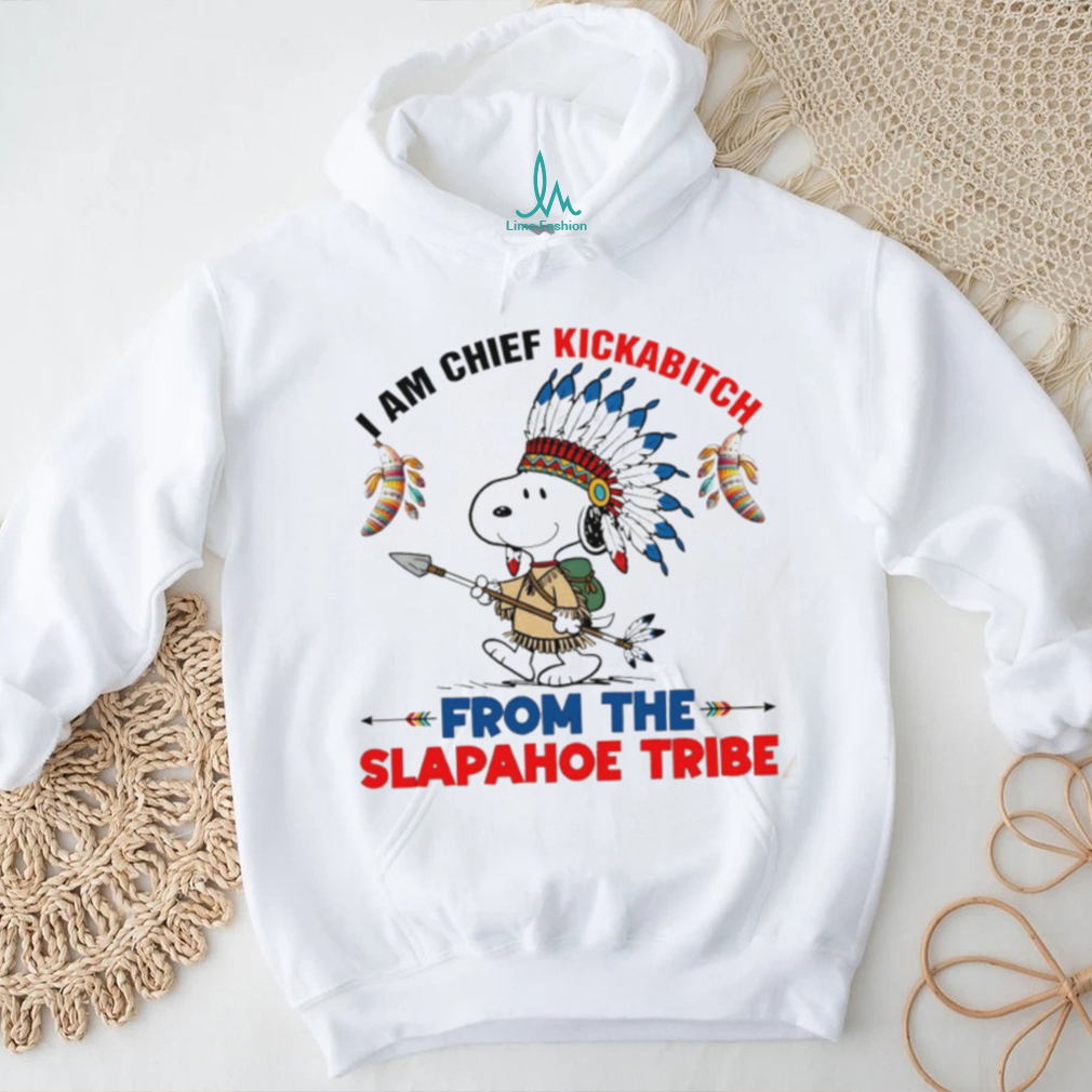 This Snoopy native American I am chief kickabitch from the slapahoe tribe new shirt is definitely not for the faint of heart; it’s a statement piece. This tee is designed to be offensive and thought-provoking and let you express your unique sense of humor. Made from a comfortable and durable material, this shirt is perfect for those who want to stand out from the crowd. Available in various sizes.