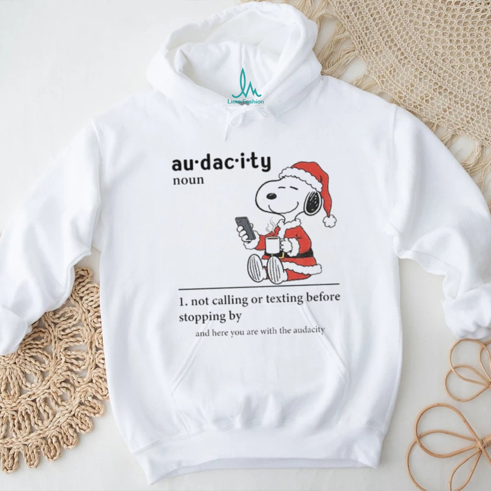 This isn’t your grandma’s Christmas sweater. This shirt combines the timeless charm of Snoopy with a hilarious “audacity definition” twist. It’s the perfect conversation starter, meme-worthy attire, and oh-so-comfortable for those cozy nights in. Picture yourself sipping hot cocoa, wrapped in the soft embrace of this tee, while the definition of “audacity” subtly shines. Beyond the laughs, it’s a quality shirt, made with a soft, breathable cotton blend. Available in a range of sizes, it’s designed for a comfortable fit that lasts through every carol and cookie.