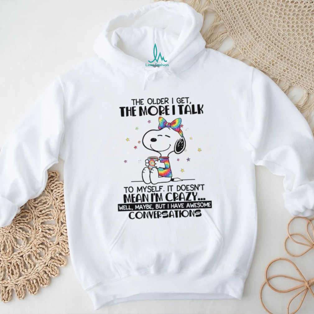 Aging is a journey, and for some of us, it means collecting more stories and sharing them with a little more enthusiasm. If you find yourself chatting up a storm as the years go by, then this “Snoopy The Older I Get, The More I Talk T Shirt” is a hilarious and honest reflection of your evolution. It’s more than just a piece of clothing; it’s a playful nod to the wisdom and wit that comes with age, all wrapped up in the timeless charm of Snoopy. Perfect for Peanuts fans and anyone who embraces their talkative tendencies, this tee is a fun way to share a laugh about getting older.