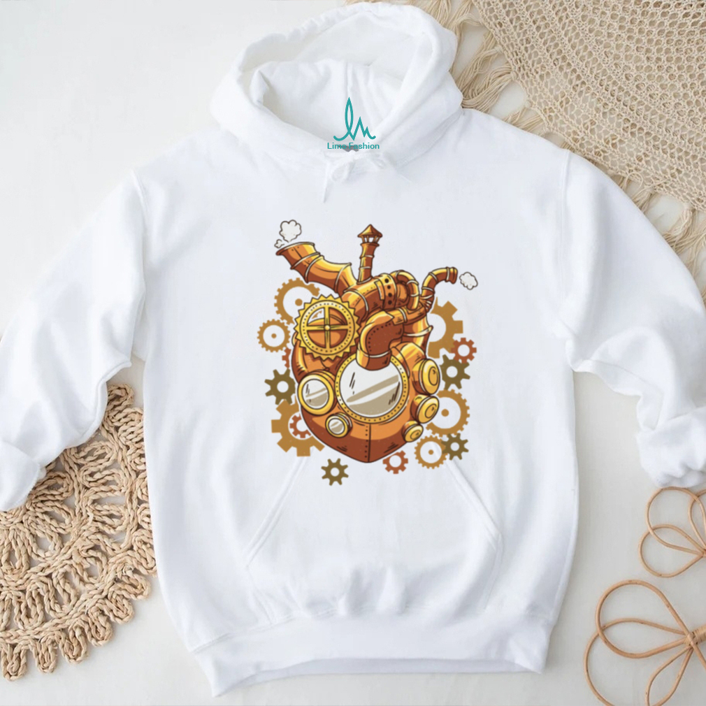 (Steampunk Mechanical Heart Gears and Steam Engine Graphic T Shirt)Steampunk Mechanical Heart Gears and Steam Engine Graphic T Shirt, Treat yourself or make a great gift for your loved ones