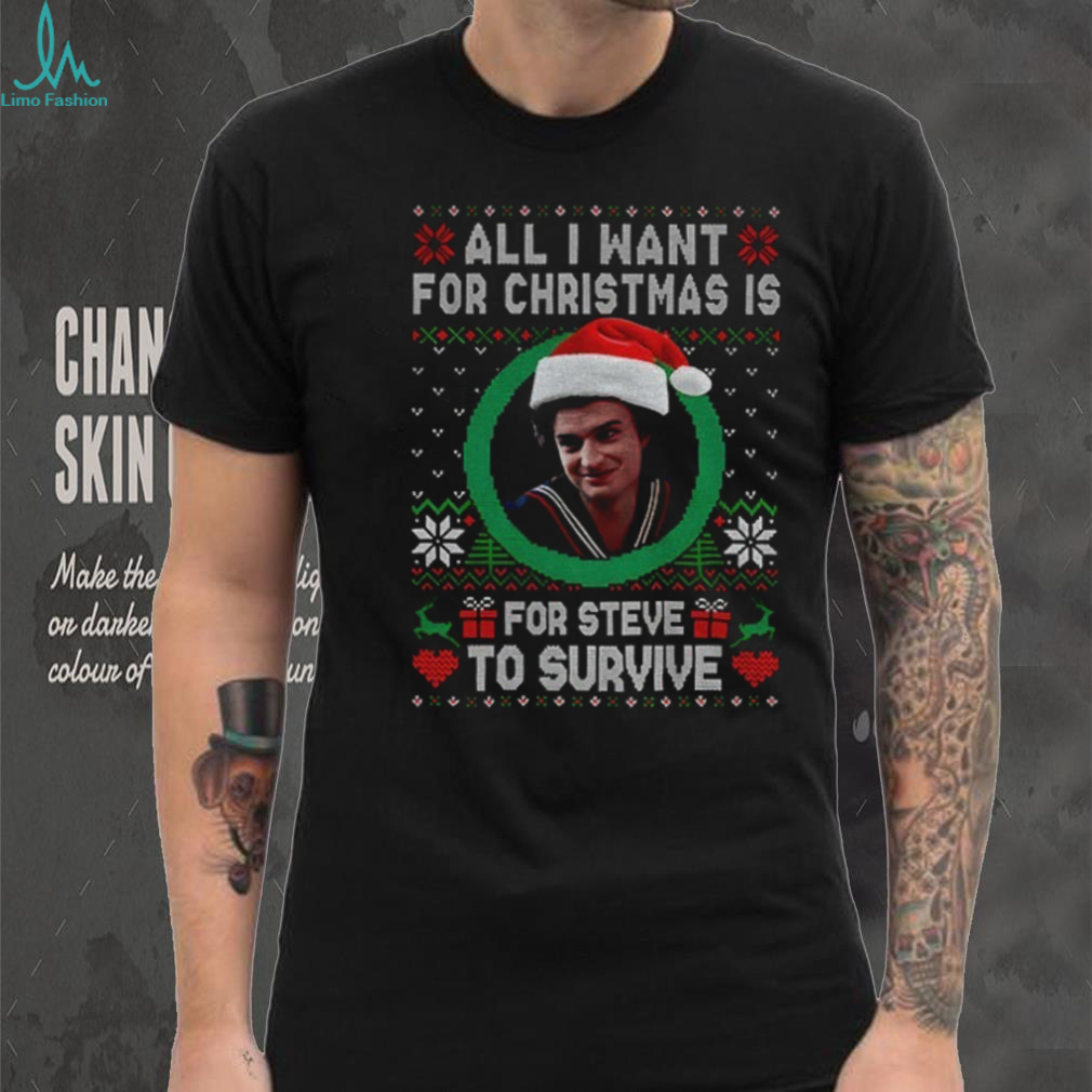 👕About Steve Harrington Santa hat all I want for Christmas is for Steve to survive shirt