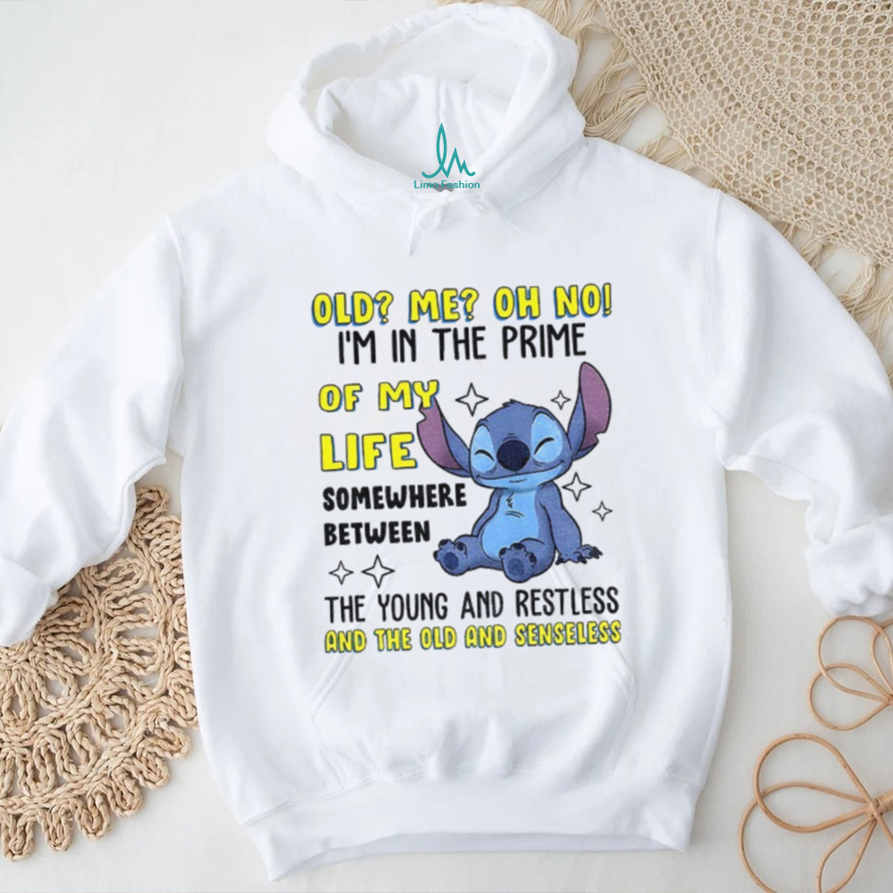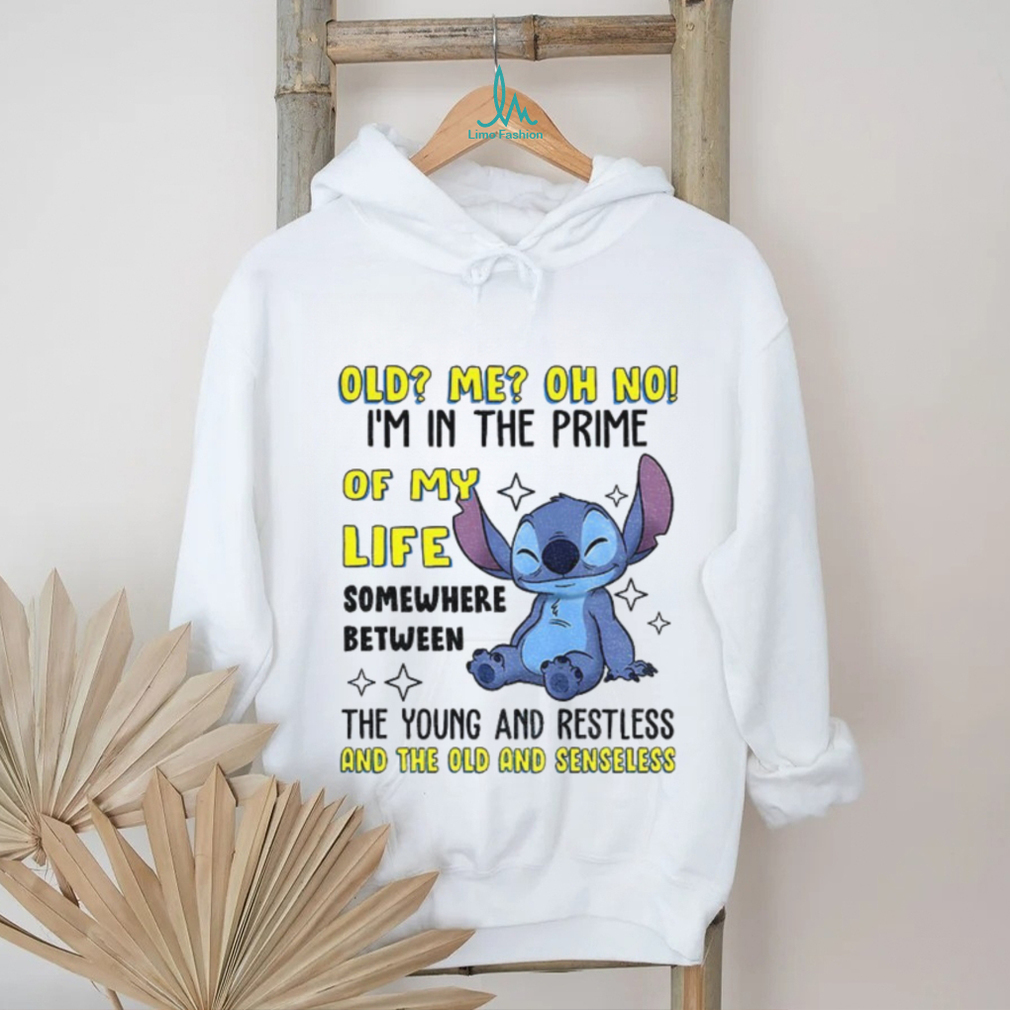 Who Rocks This Best with Stitch old me oh no I’m in the prime of my life somewhere between the young and restless shirt?