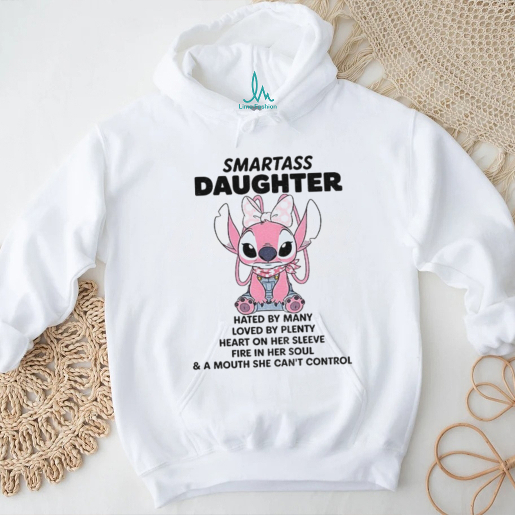 Ever felt misunderstood but empowered? This ‘Stitch smartass daughter hated by many loved by plenty heart on her sleeve fire in her soul shirt’ isn’t just a piece of clothing; it’s a statement. Designed for the fierce, independent woman who embraces her true self, this shirt lets the world know she’s got a heart of gold and a spirit that can’t be tamed. Perfect for those who stand tall in their convictions and wear their personality proudly.