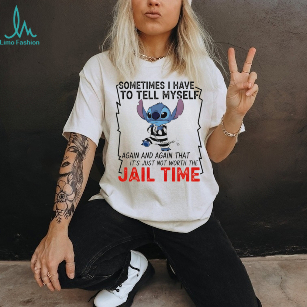 Channel your inner Stitch with this hilarious shirt! Featuring the relatable saying “Sometimes I have to tell myself again and again that it’s just not worth the jail time,” this tee is perfect for anyone who loves Disney and a good dose of sarcasm.