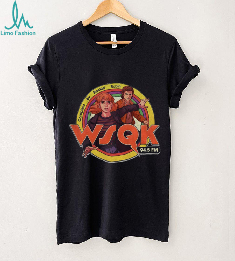 The Stranger Things WSQK 94.5 FM compiled by Rockin’ Robin cartoon shirt is perfect for dedicated Stranger Things fans who appreciate a vintage aesthetic and a touch of humor. It’s an excellent gift for sci-fi enthusiasts, retro radio lovers, or anyone who enjoys unique pop culture apparel. Wear it to comic conventions, movie nights, or simply as a comfortable everyday statement piece. It’s for those who like their nostalgia with a side of supernatural adventure.