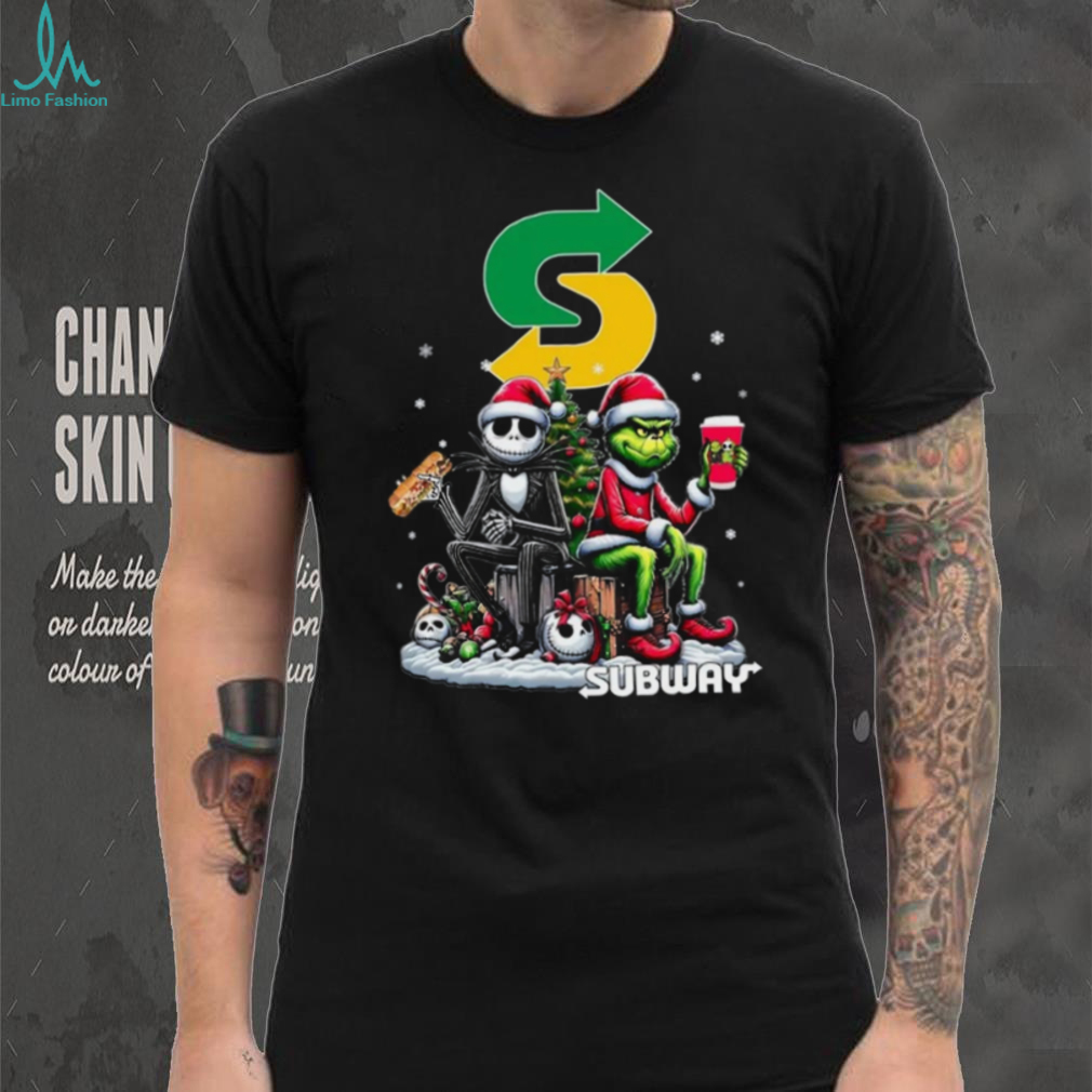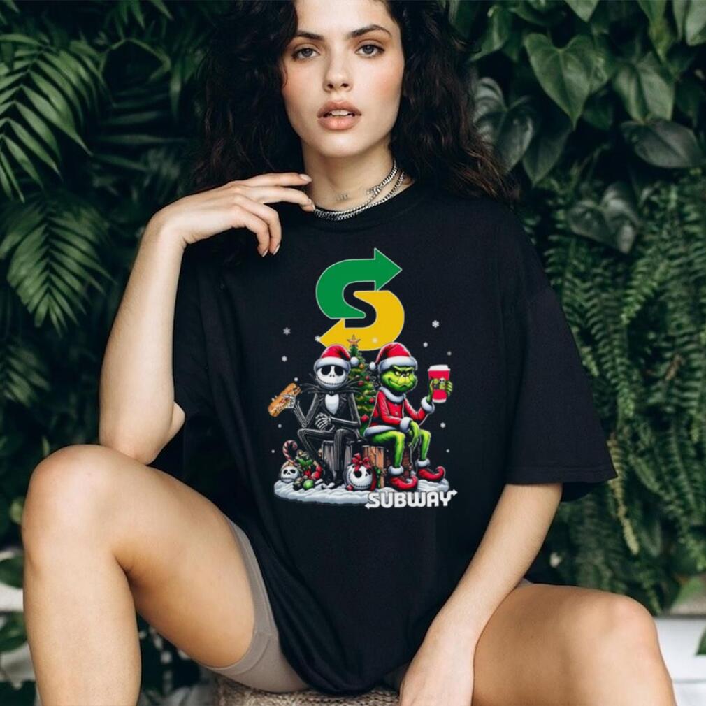 With each Subway Christmas The Grinch And Jack Skellington T-Shirt, you’re contributing to creating a green tree. To keep your shirt looking its best, machine wash cold, inside out, and tumble dry low. Avoid ironing directly on the design to preserve the graphic’s integrity for holiday seasons to come.