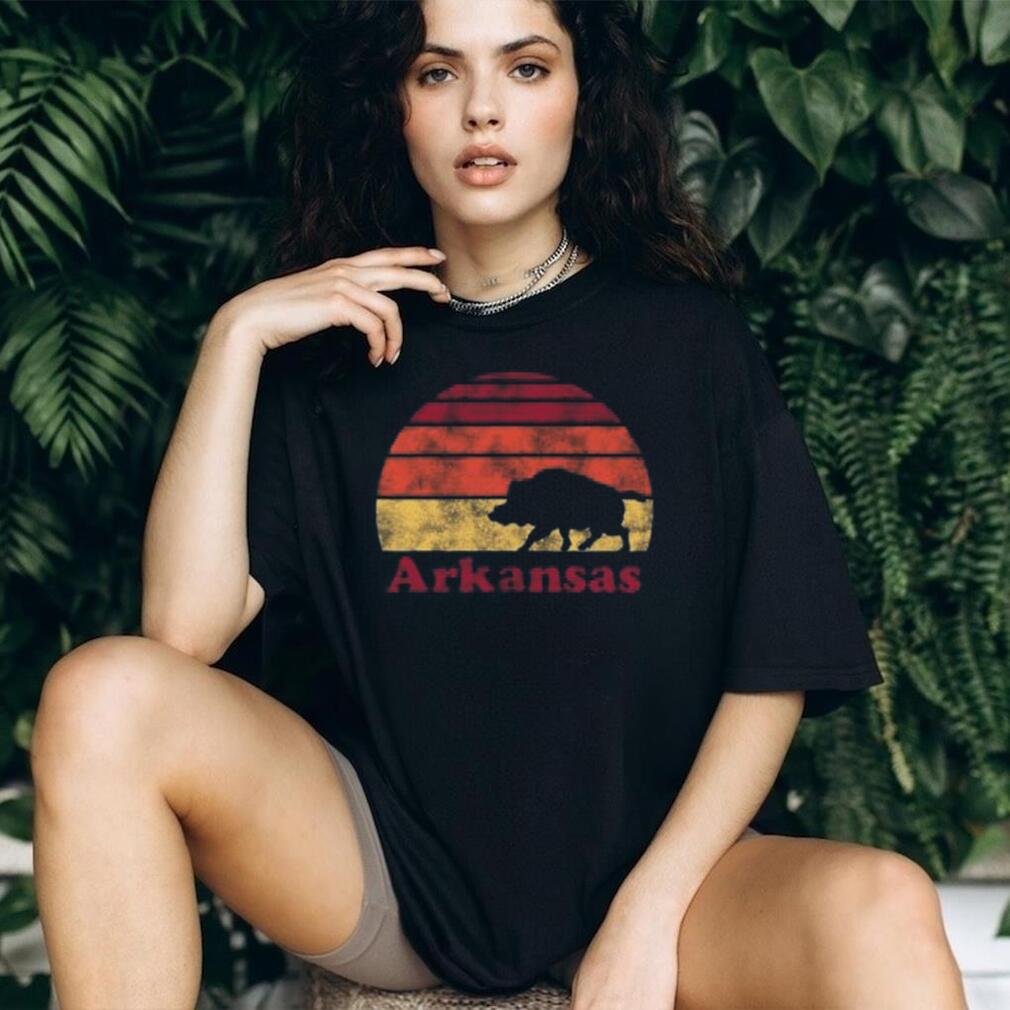This Arkansas Razorbacks sunset shirt blends team spirit with a cool, casual aesthetic. Ideal for game days, campus wear, or showing off your Razorback pride wherever you go.